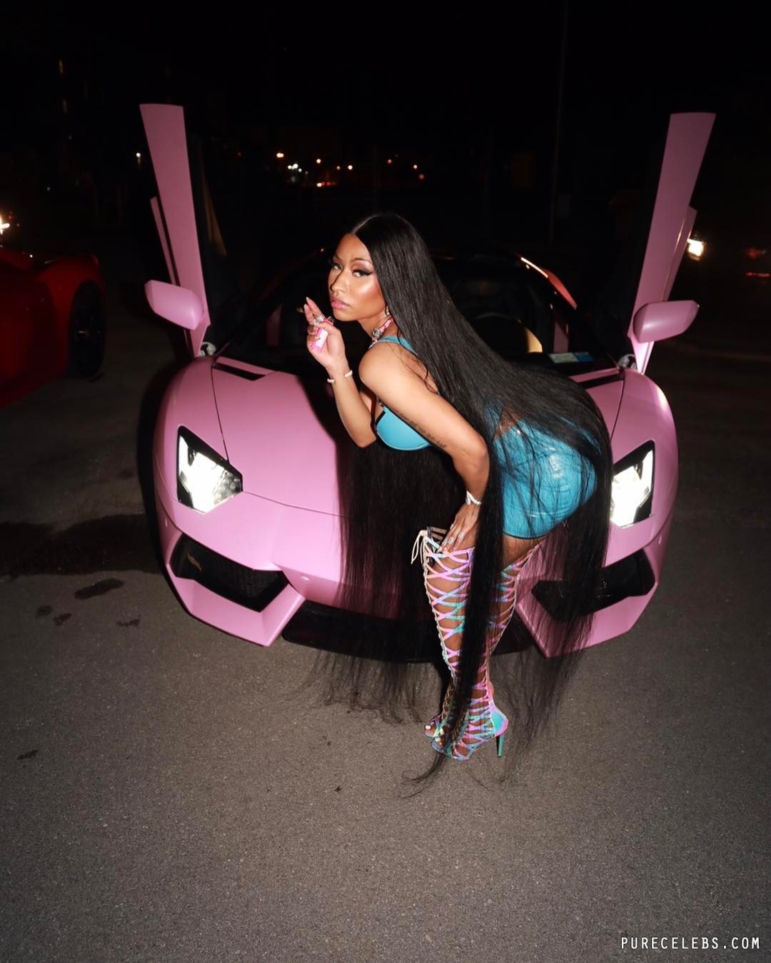 American rapper Nicki Minaj nearly showed her nude body, posing in a pink latex outfit. The outfit was tight-fitting, and its top had a very bizarre shape and had a deep neckline. Therefore, Nicki Minaj nude tits were only half covered and it looked very sexy. By the way, it is worth noting that her gorgeous booty also looked amazing in tight pink panties!