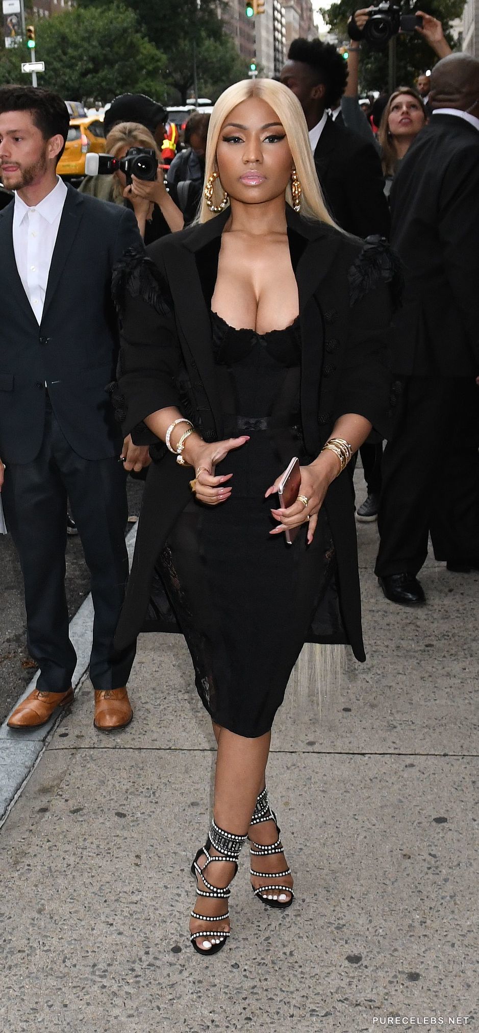 NIcki Minaj is famous for her gangster attitude and provocative song lyrics. She also enjoys dressing slutty to the pleasure of her fans. The ebony vixen was recently photographed at a red carpet event wearing a skintight black dress. It appears that her boobs are as wild and hungry for attention as she is because they refused to remain hidden under her dress. Lucky reporters were able to catch her nipples escaping her skimpy dress.