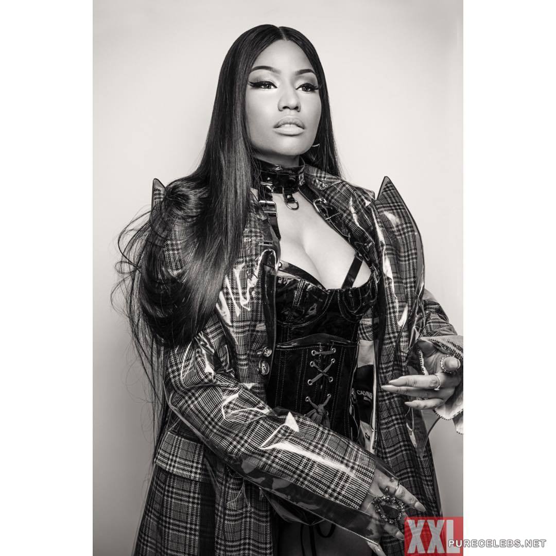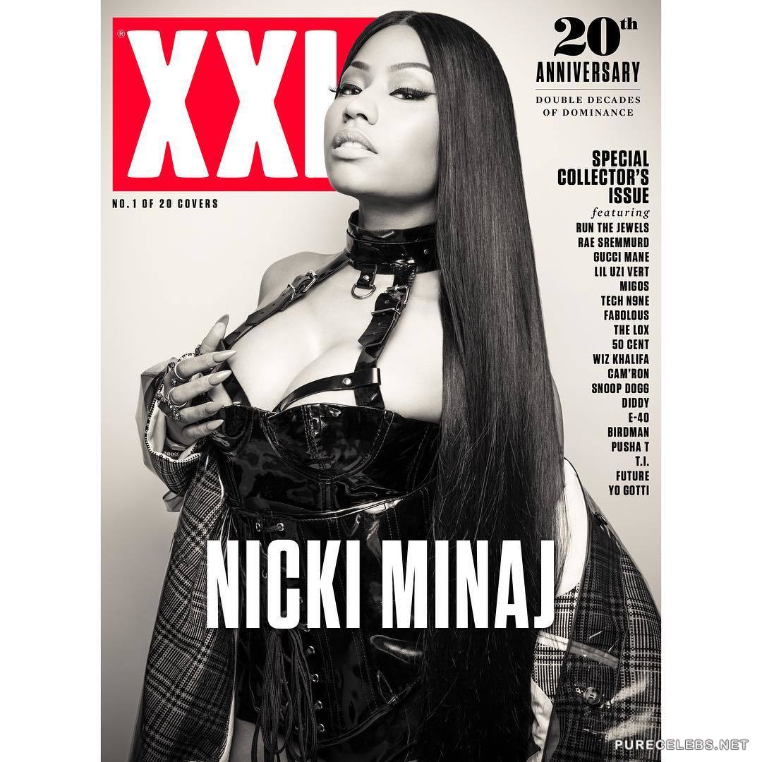 This dark skinned beauty queen, Nicki Minaj has appeared in 20th anniversary of XXL Magazine. A famous rapper, writer, songwriter and actress, has gained worldwide fame with several albums, and also with modeling for various magazines. As we are all being familiar with Nicki’s famous curves, we got what we expected. Several pictures of her, wearing a jacket and leather corset, with a camera focused on her full juicy lips and her massive boobs.