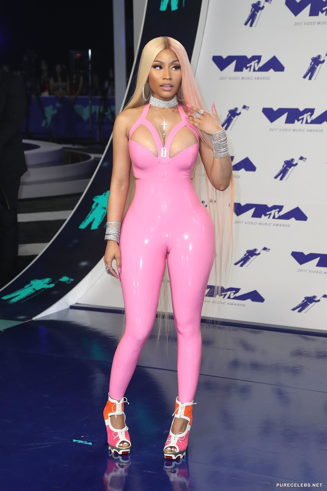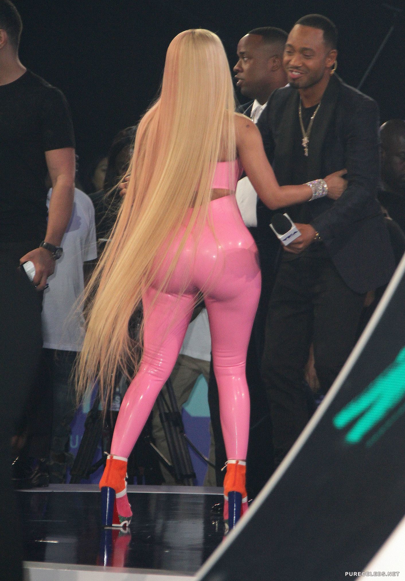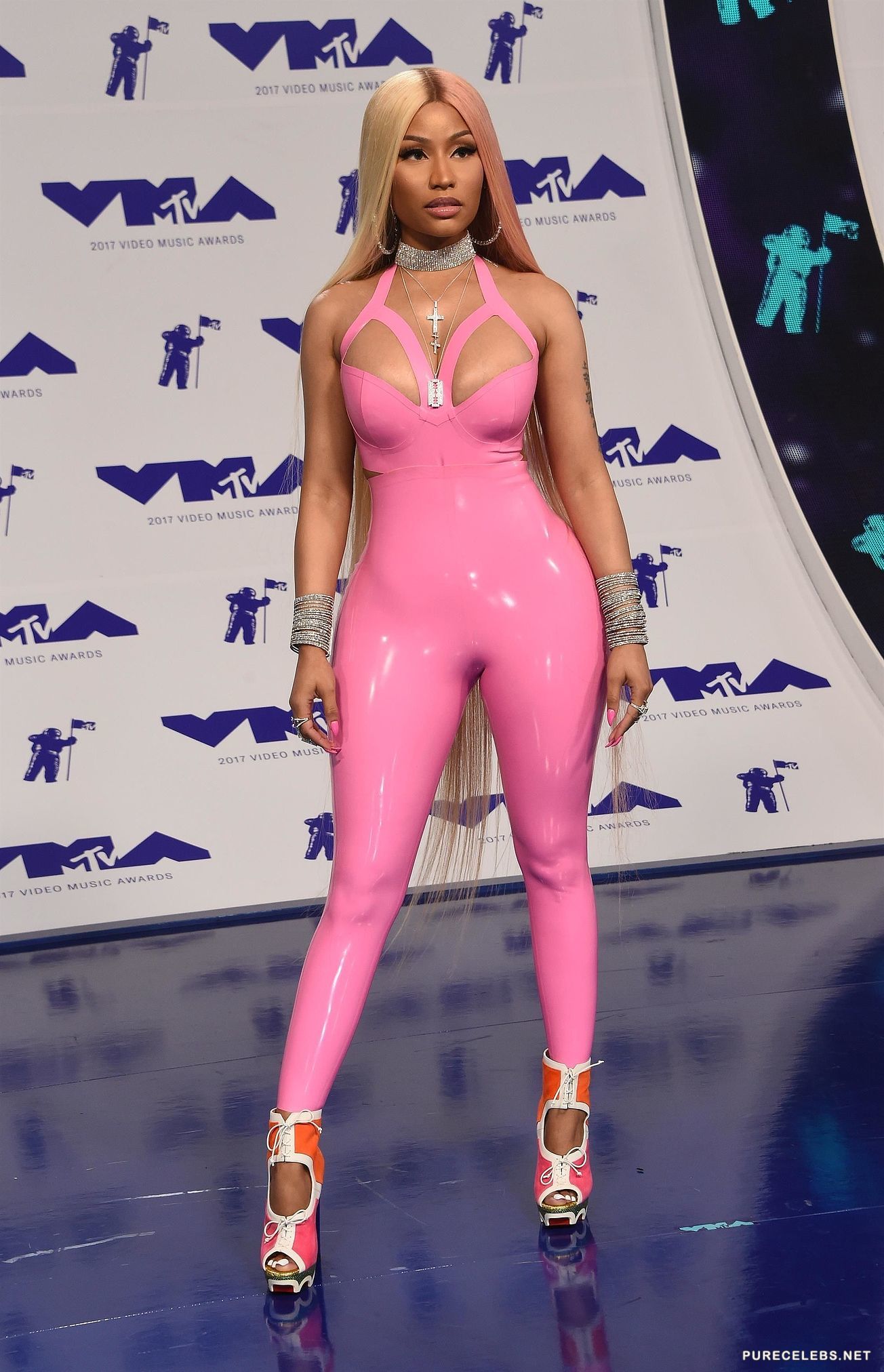 Ebony rapper Nicki Minaj is all about the booty judging from her public appearances and videos. She doesn’t mind flaunting her super curvy, black body any chance she gets, but we think her appearance on the 2017 Video Music Awards was definitely a wardrobe malfunction and mishap. In this gallery, you can see her sporting a super tight latex outfit which made her pop a camel toe in front of everybody.