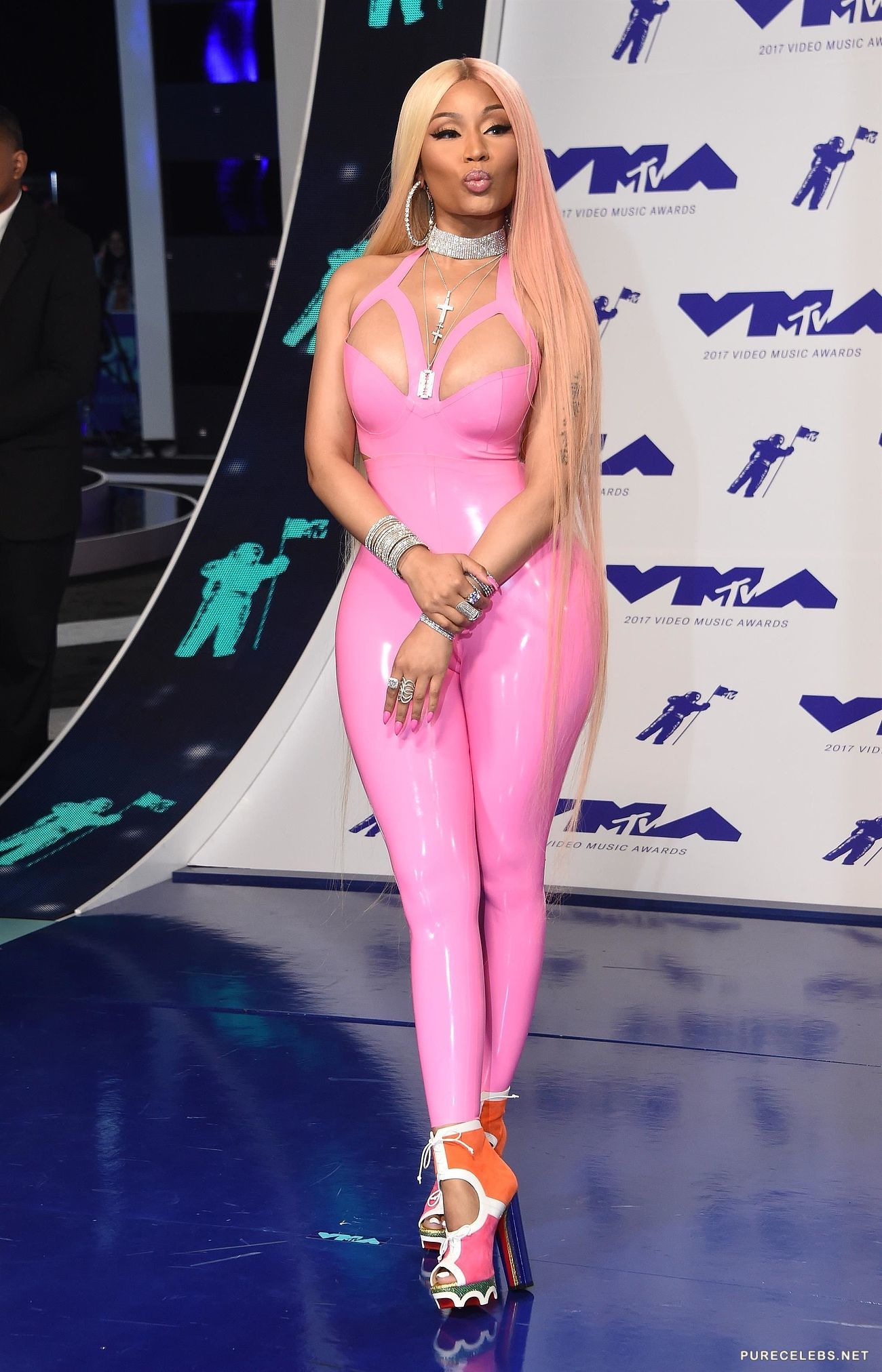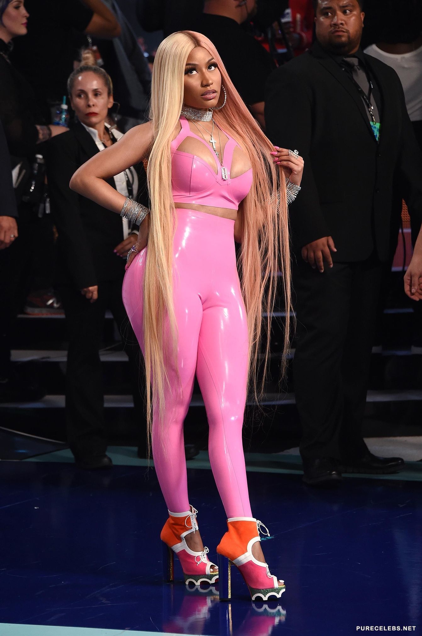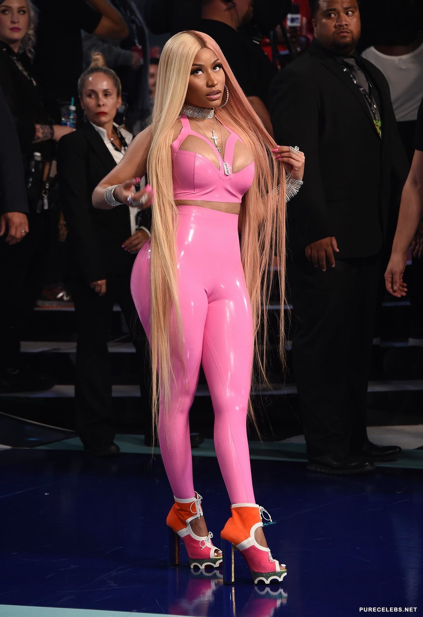 Ebony rapper Nicki Minaj is all about the booty judging from her public appearances and videos. She doesn’t mind flaunting her super curvy, black body any chance she gets, but we think her appearance on the 2017 Video Music Awards was definitely a wardrobe malfunction and mishap. In this gallery, you can see her sporting a super tight latex outfit which made her pop a camel toe in front of everybody.