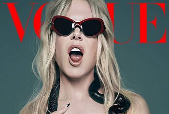 Nicole Kidman looked incredibly sexy on the cover of Vogue magazine. The black lace bodice emphasized the beauty of her miniature tits, and a snake wrapped around her thin neck, which the celebrity held with her hand. This Australian actress also showed off her gorgeous ass in a beige tight skirt. This time her tits were covered by a small black bra. Also stunning was the photo of Nicole Kidman in black lace lingerie with a corset.