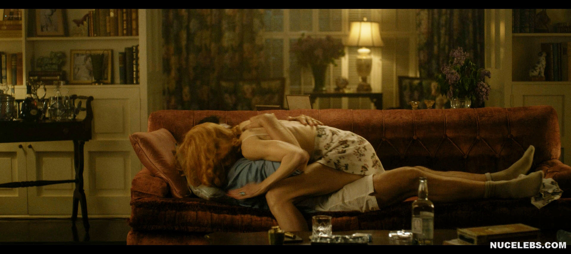In some movies Nicole Kidman pampers us with her nude body, and in some she doesn’t … For example, in Being the Ricardos you can see her in lingerie. Even the fact that Nicole Kidman didn’t show us her nude boobies or butt doesn’t make this movie any less fun, though. So, this charming actress in a cute white bra was talking to a man on the balcony. And you can also see how she fucks with a man on the bed, filling the room with moans.