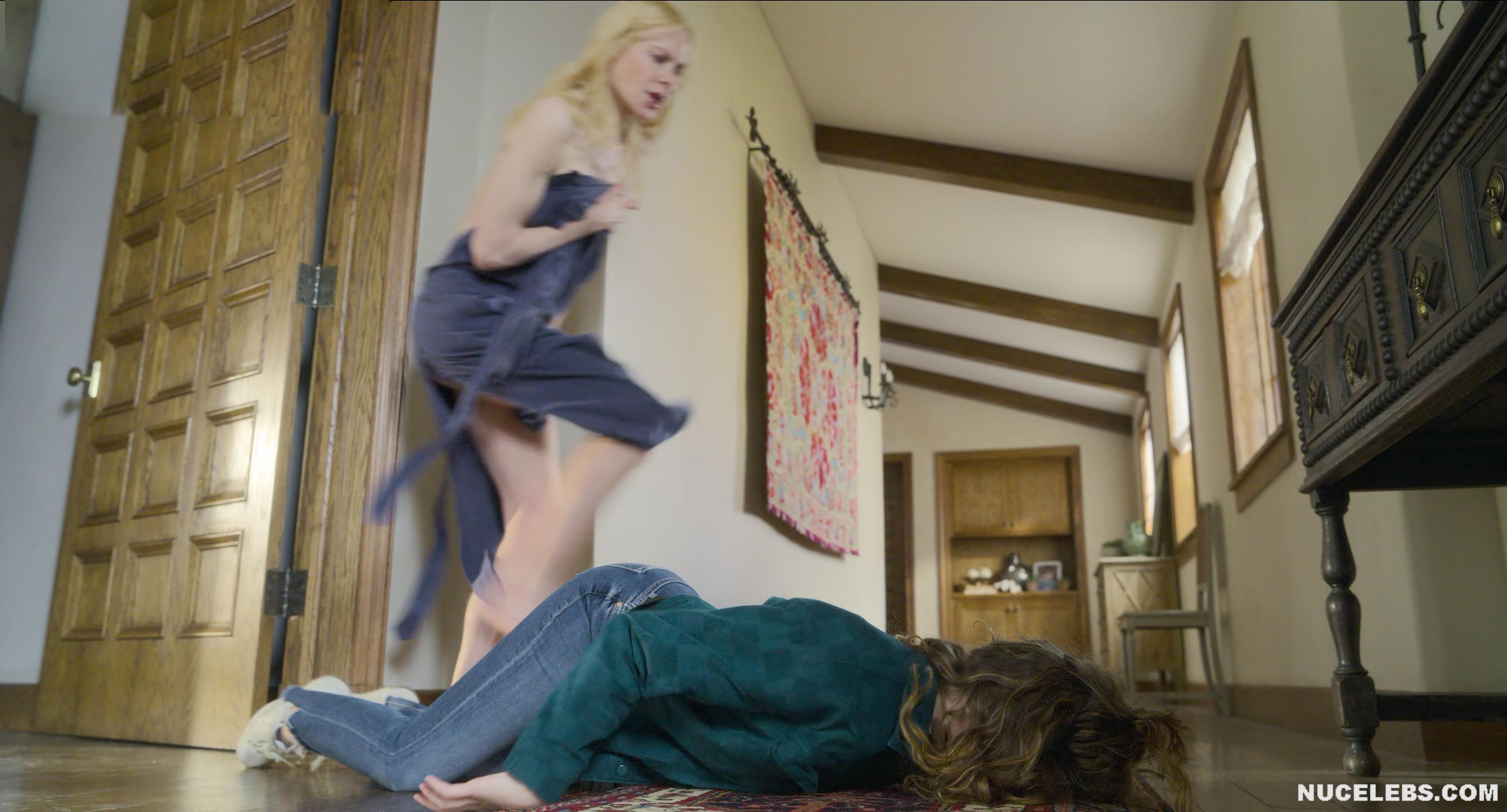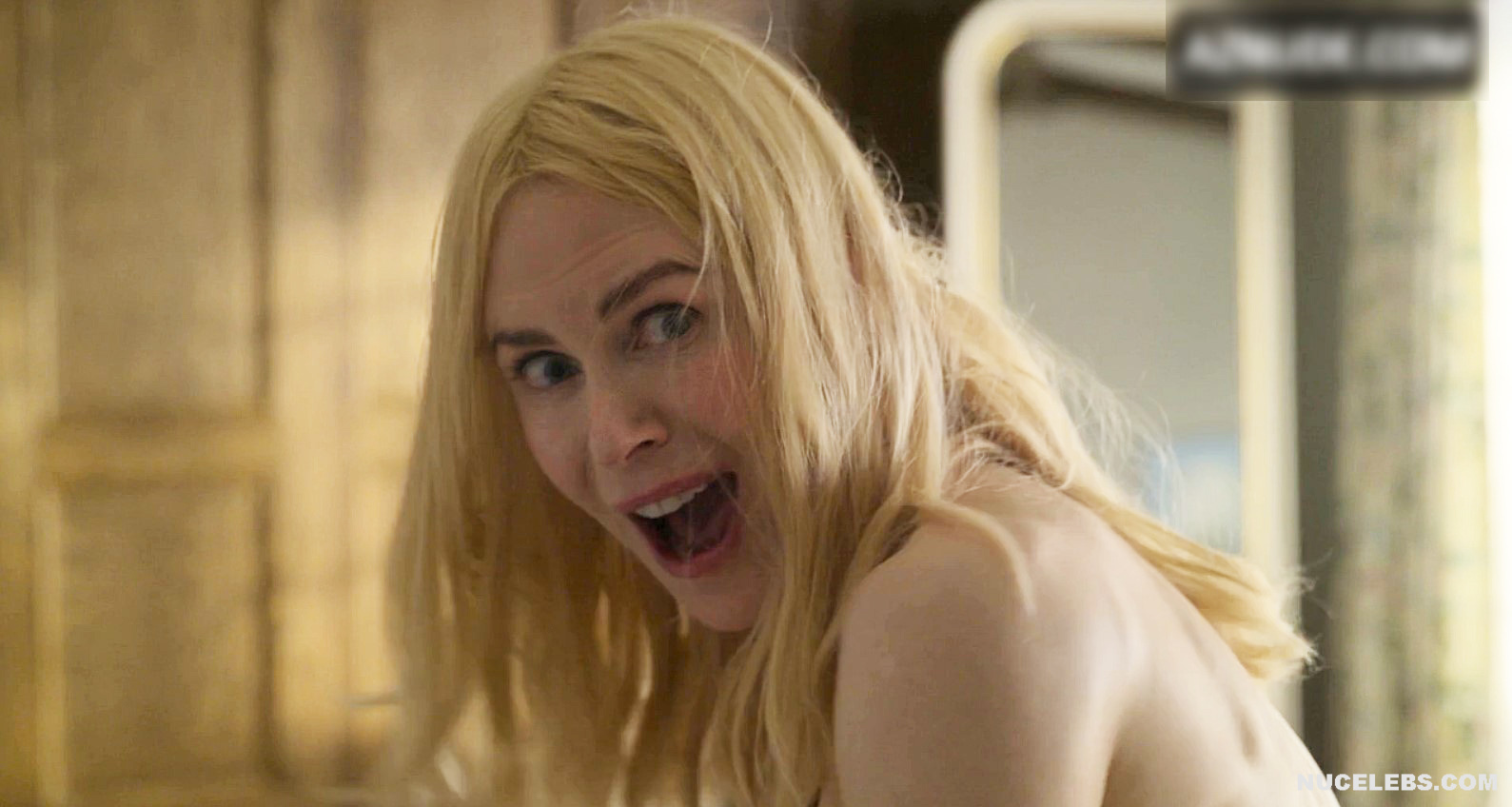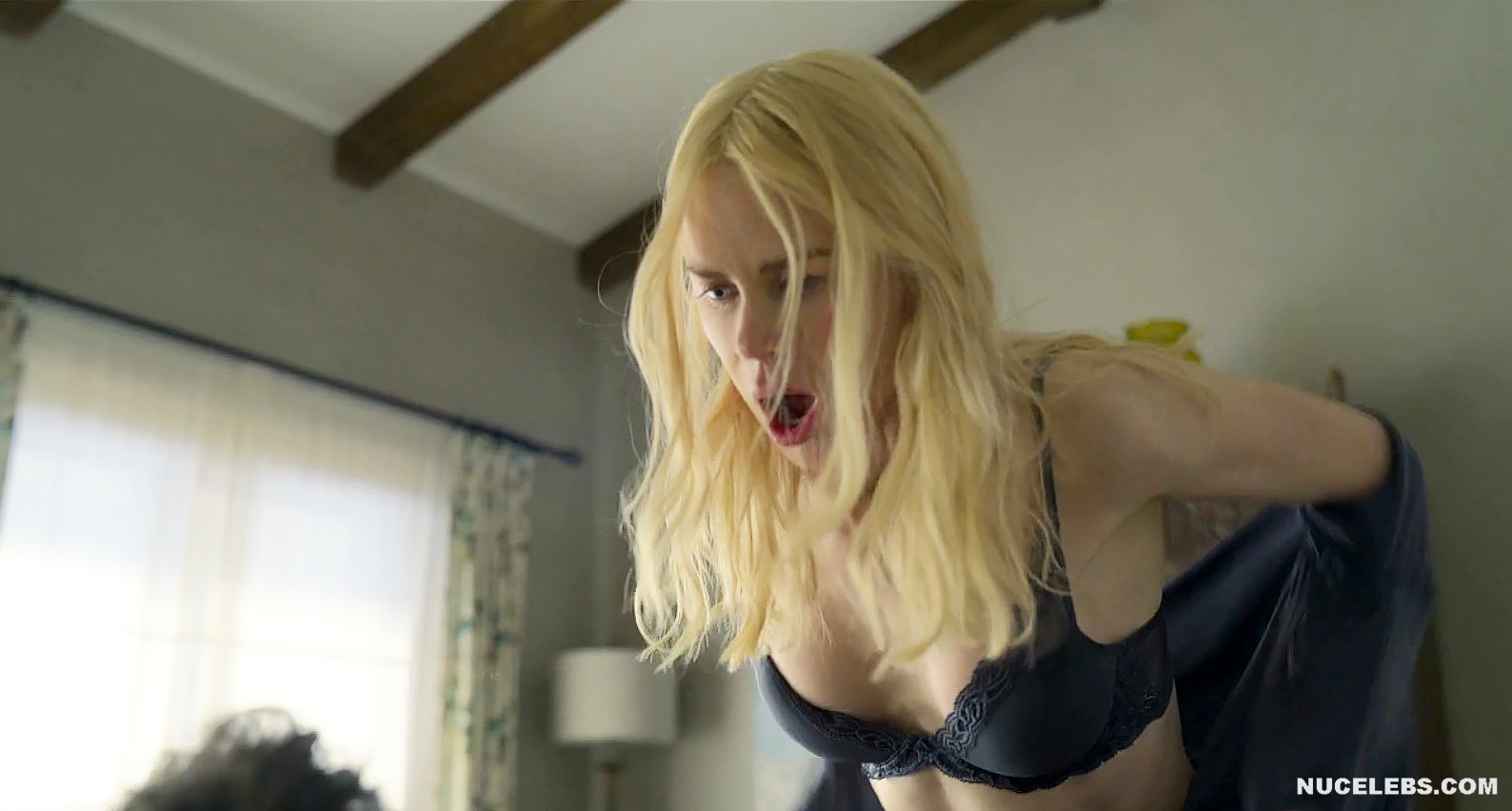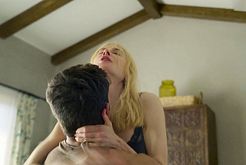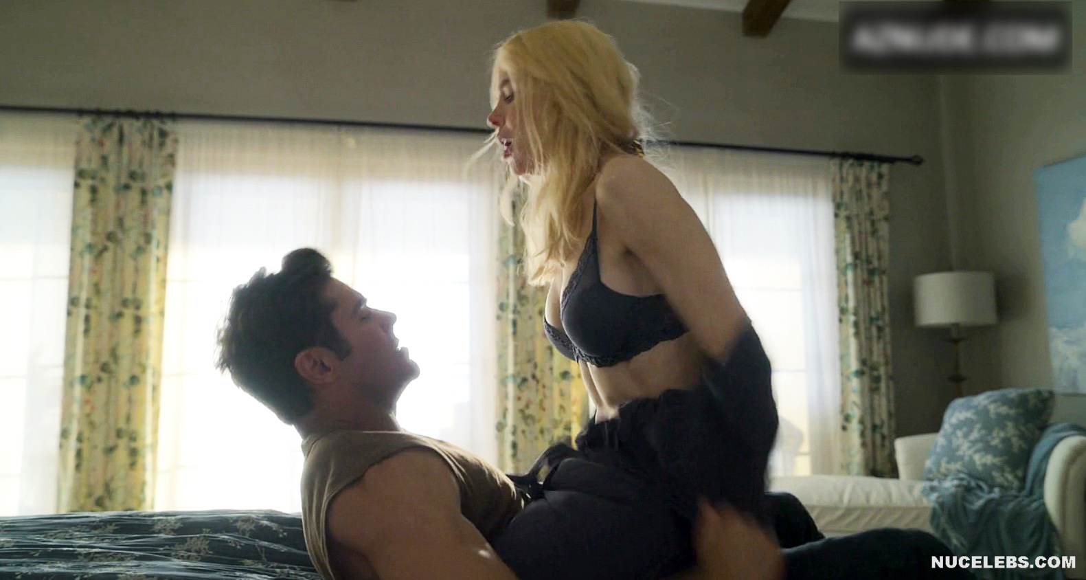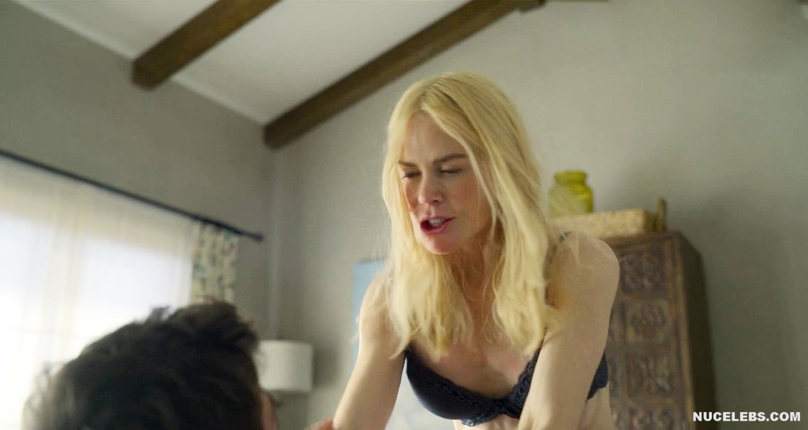 Nicole Kidman nude awesome boobies were on display for a few moments in A Family Affair! The famous blonde tried on several seductive outfits in front of the mirror, admiring her figure. However, when she found herself in the same bed with a man, she was in a hurry to throw off all the extra clothes. So, her black bra quickly ended up on the floor. And just at the moment when Nicole Kidman boobs were completely nude and she was about to ride a man’s penis, a girl entered the room…