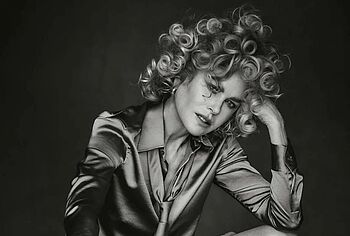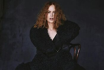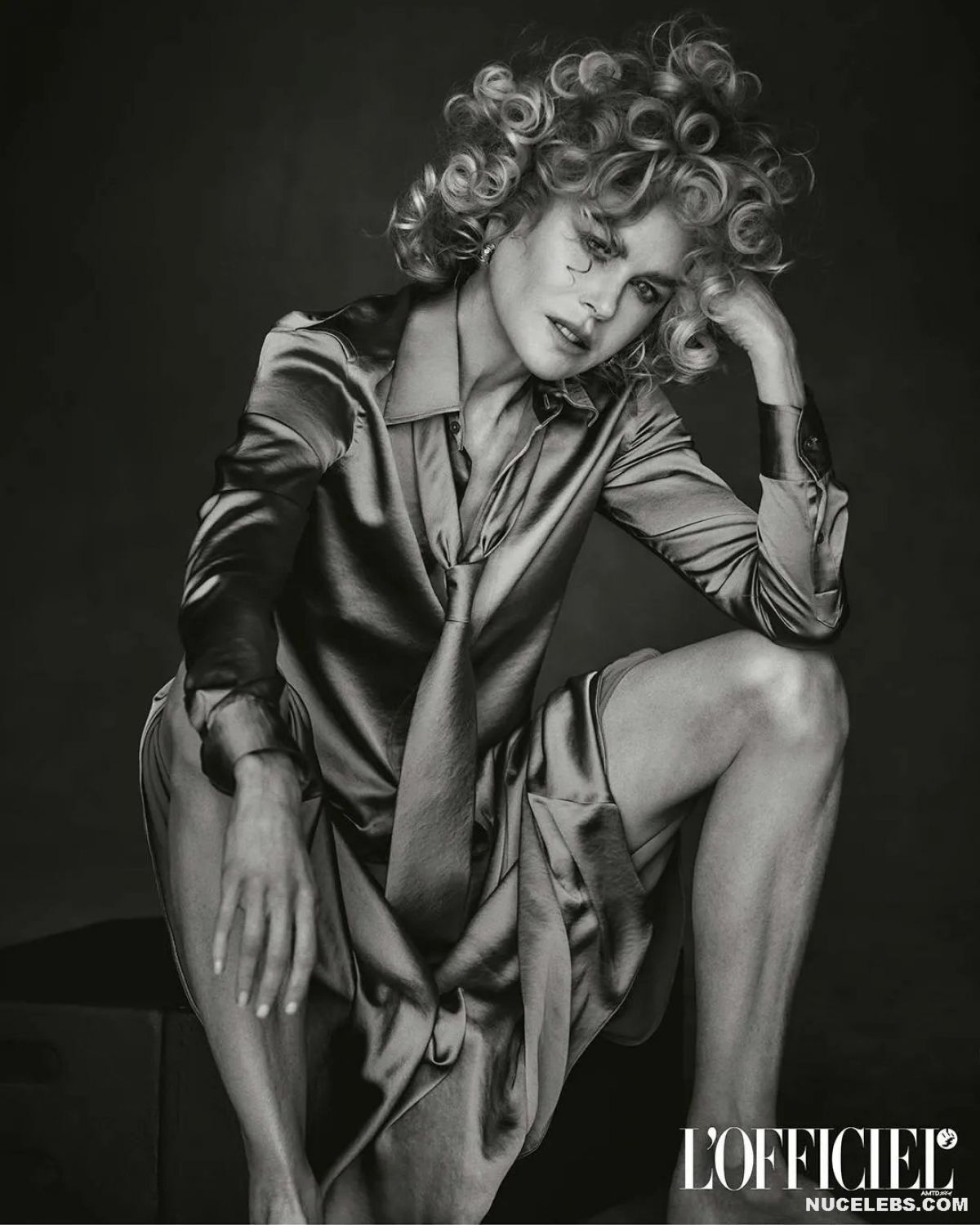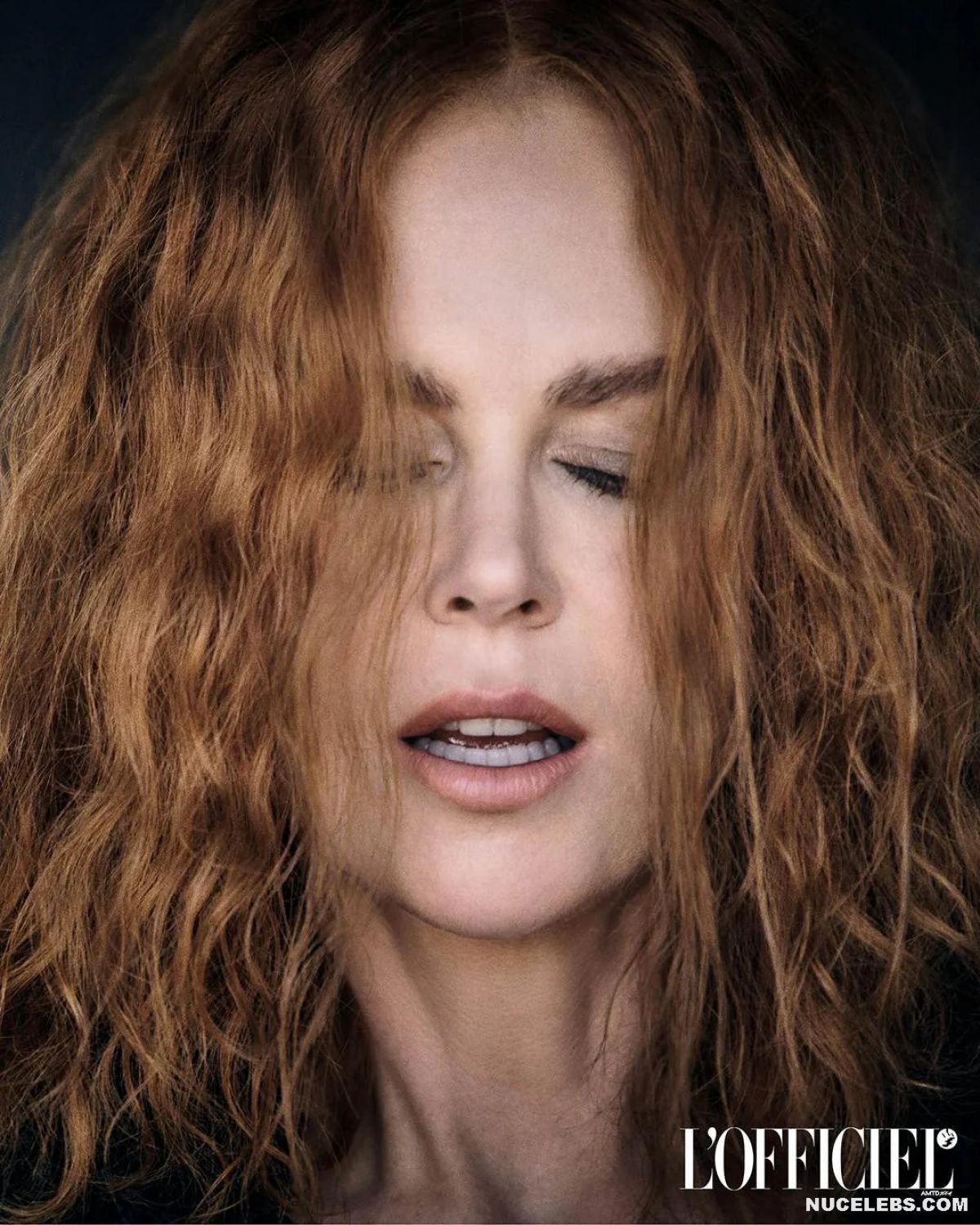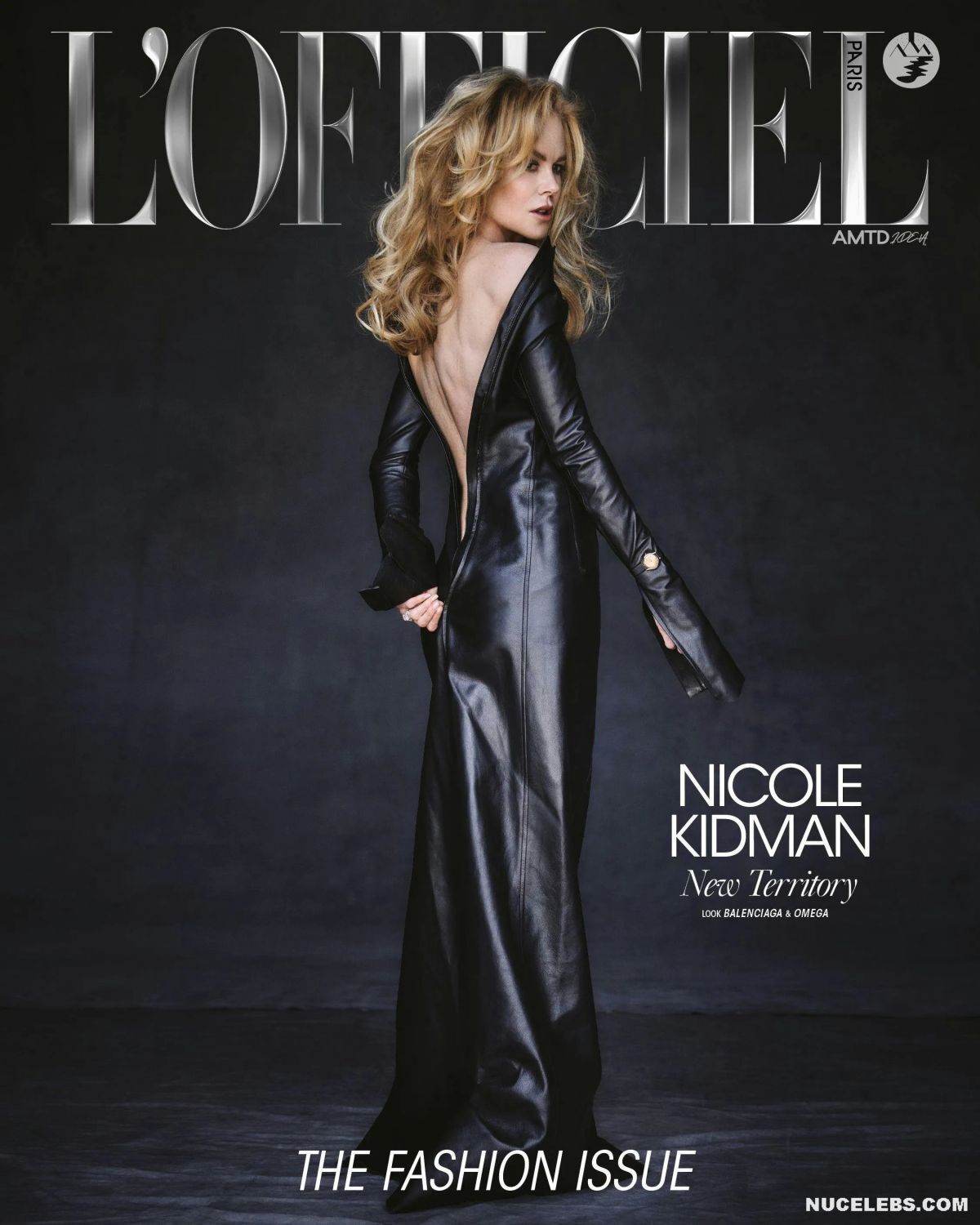 Nicole Kidman has a figure that many admire, sculpted and fit. This hottie moves with such grace and elegance that it’s impossible not to be captivated by her presence. That’s why photo shoots with her participation are unforgettable. This actress posed in a tight leather dress for the cover of the magazine. Part of her naked back, almost to the buttocks, peeked out from the unbuttoned back of the dress, and it looked damn sexy. Also, Nicole Kidman almost showed her nude boobs in the frame. So, this star appeared in the frame topless, hiding her miniature boobs behind her palms.