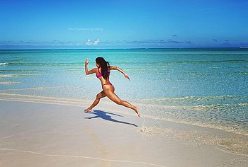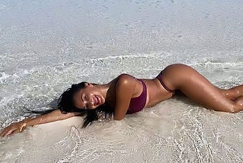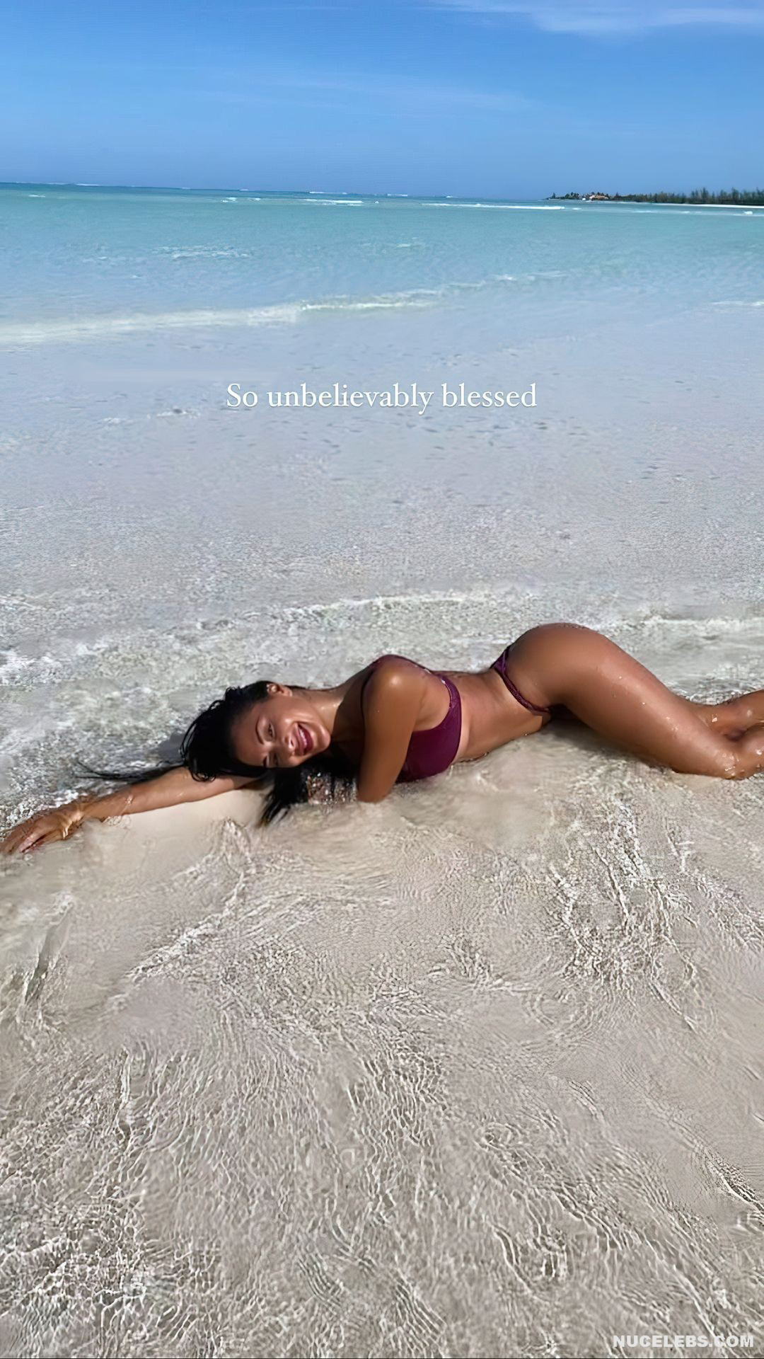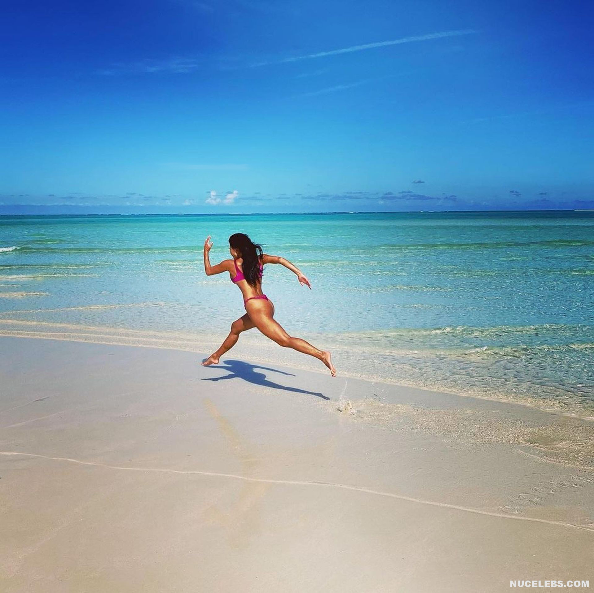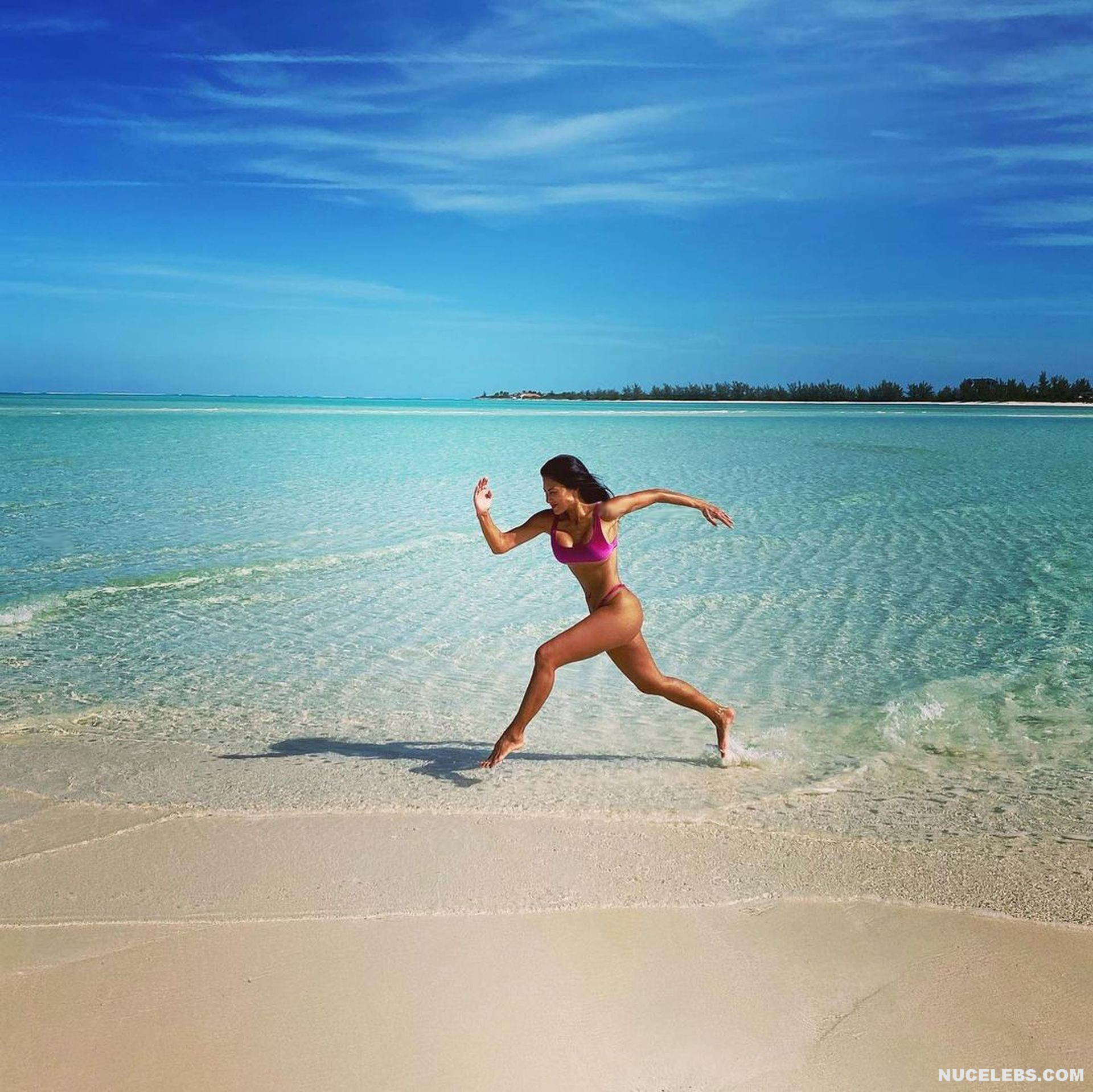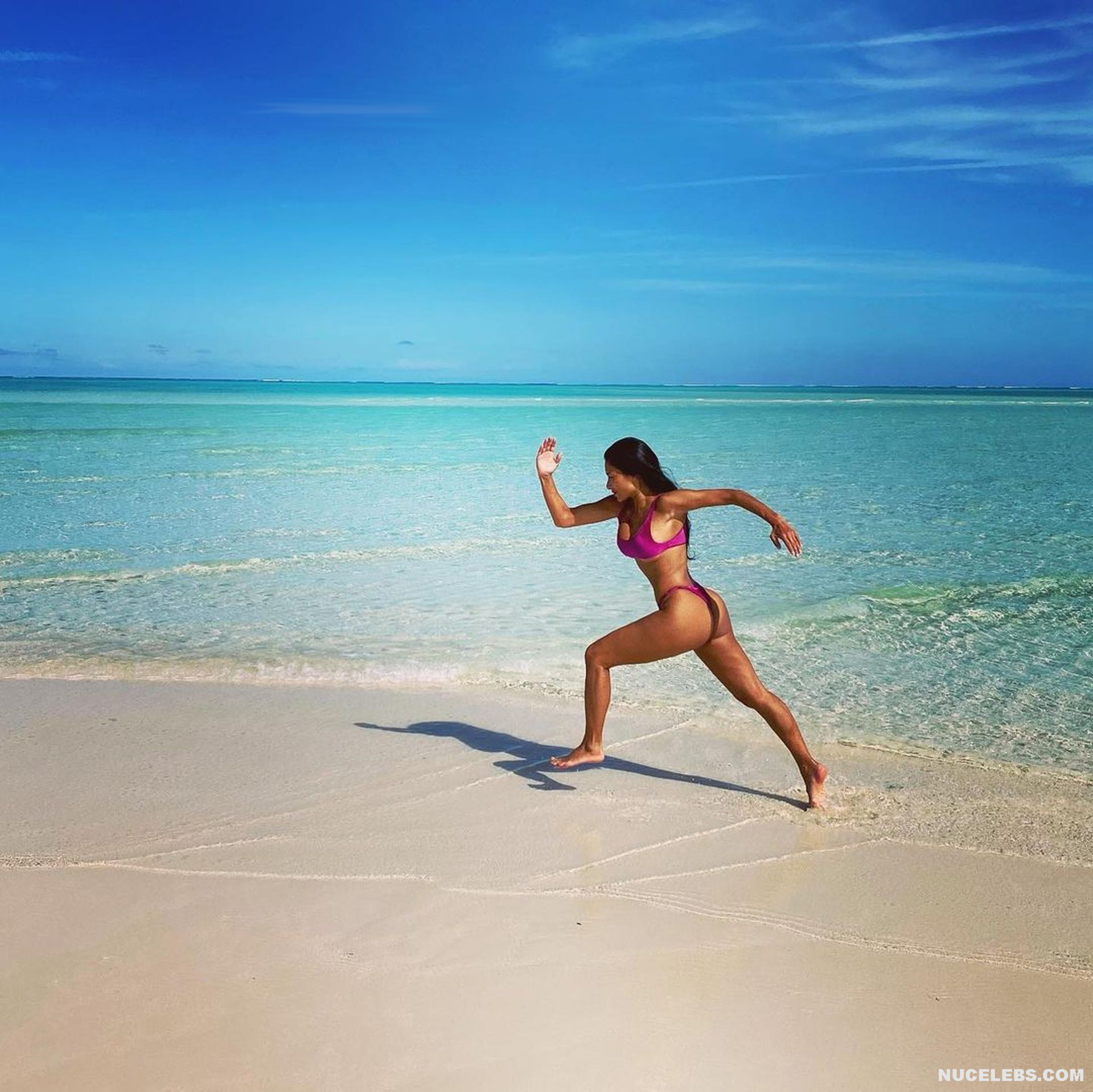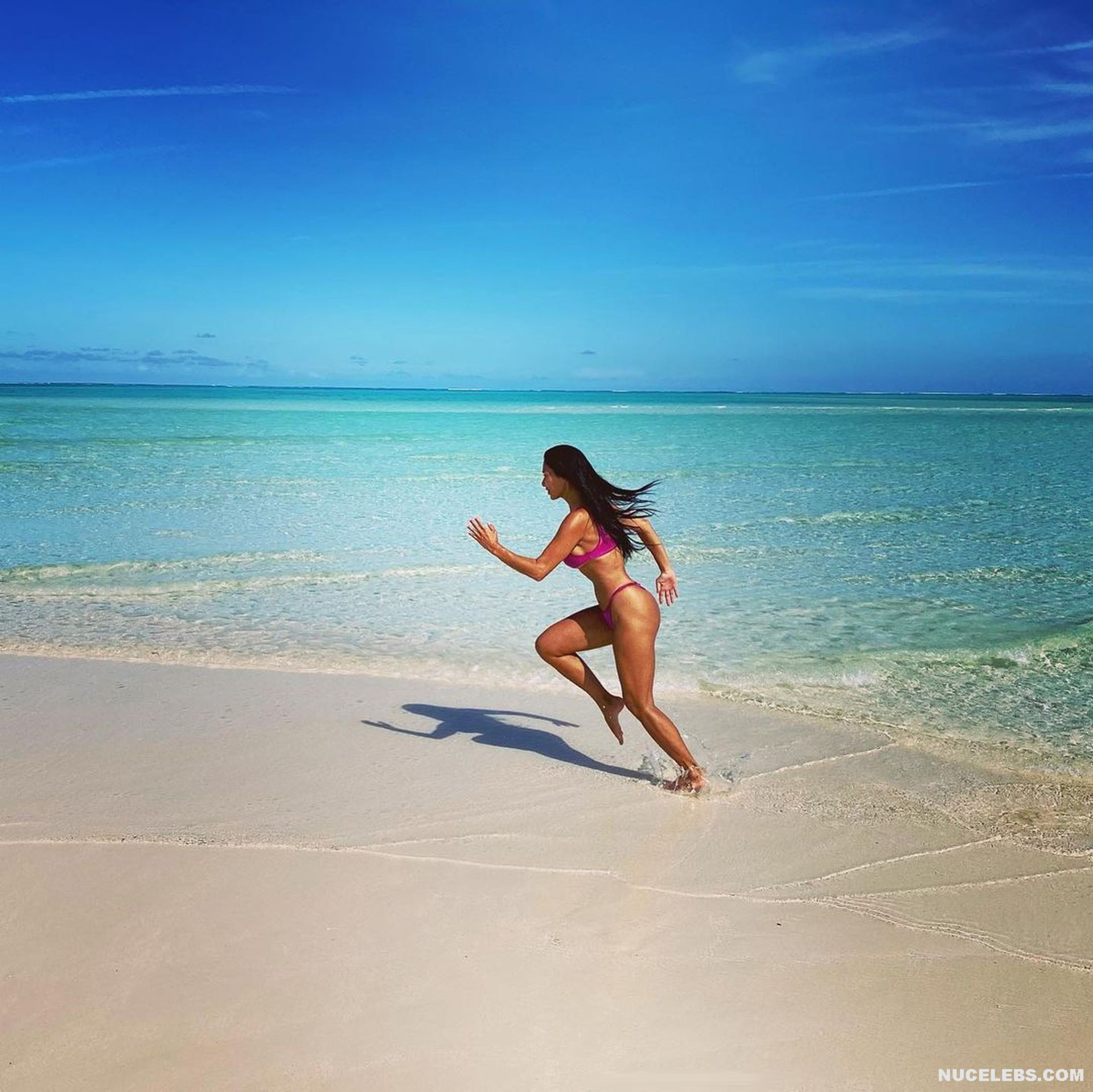Nicole Scherzinger showed off her tanned body during a beach vacation. And while Nicole Scherzinger didn’t show off her nude tits or booty, she still manages to spark your fantasy with her pics in a petite purple bikini. This hot chick was happily lying on the seashore, flaunting her gorgeous peach posterior in a petite thong. And the bottom of Nicole Scherzinger’s nude boobies slid out of her tight-fitting bra. Wow, this American singer looked incredibly sexy at this moment!
