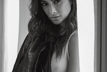 43-year-old singer Nicole Scherzinger looks much better than many young beauties. Just look at her recent black and white photoshoot. And to excite the audience even more, Nicole Scherzinger starredb raless. So, this girl posed in loose jeans, a white top and a black leather jacket. At the same time, Nicole Scherzinger nude tits with brown nipples seemed just huge in a transparent tight-fitting top!
