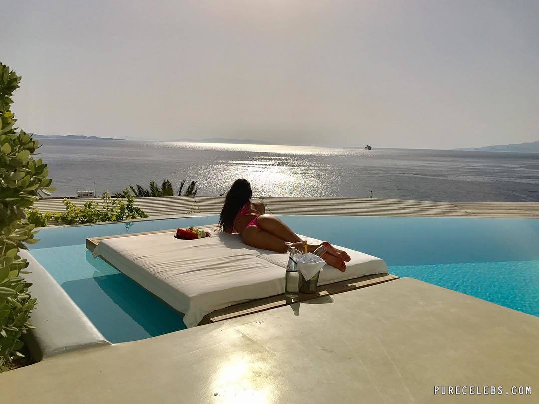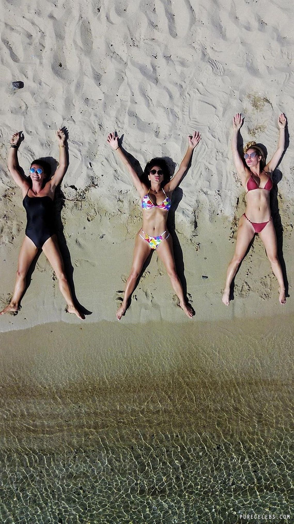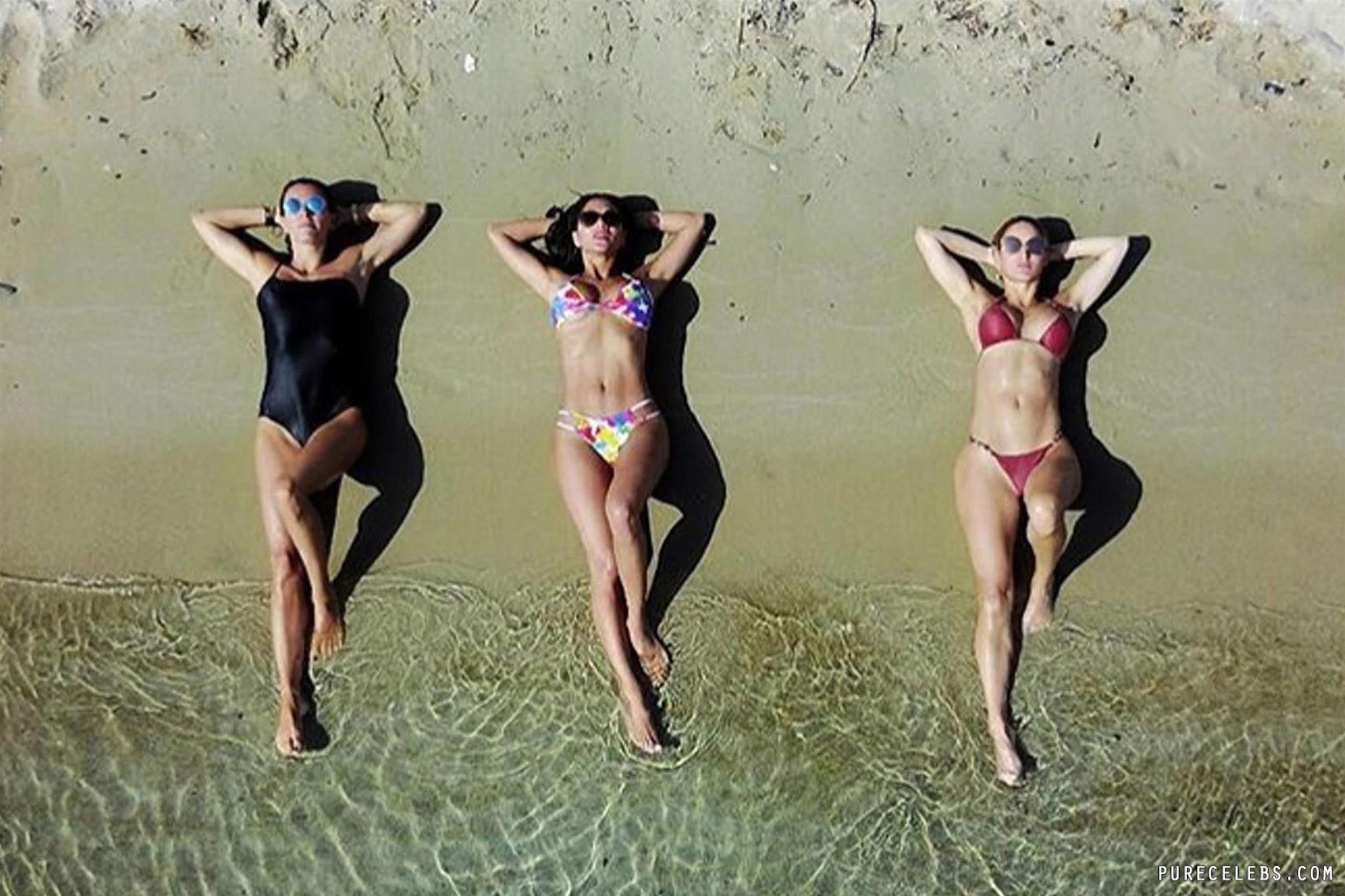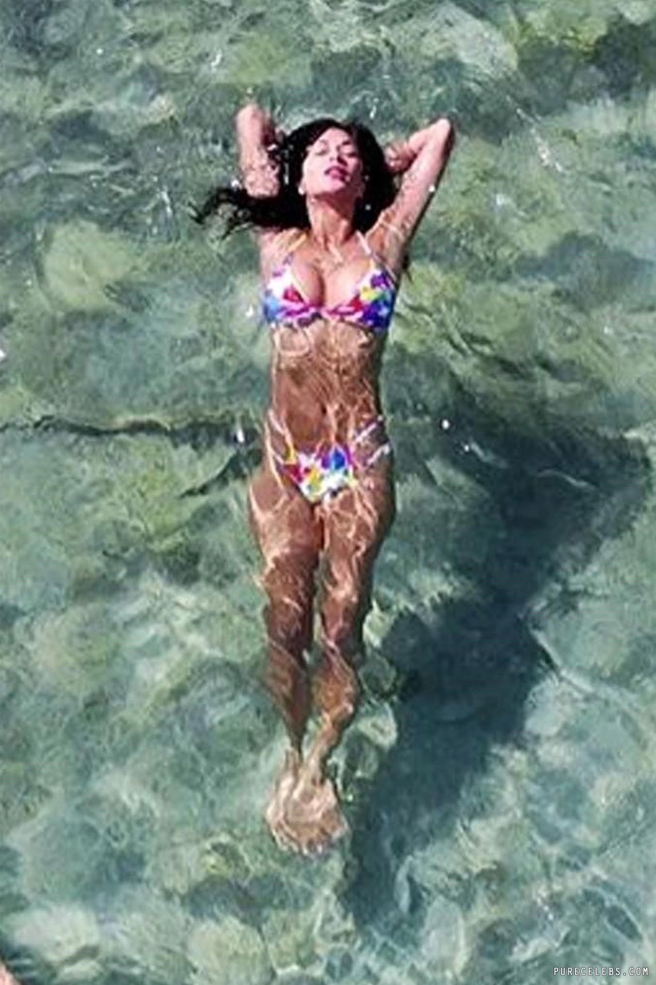 American singer Nicole Scherzinger never ceases to delight her fans with hot sexy photos. So, the celebrity boasted of her photos in a bikini. The girl lay on the sand, legs and arms spread to the sides. Her boobs looked very sexy in a small multi-colored bra. And her little panties barely covered nude pussy of Nicole Scherzinger. This beauty did not forget to boast of her chic butt swimming in the clear water.