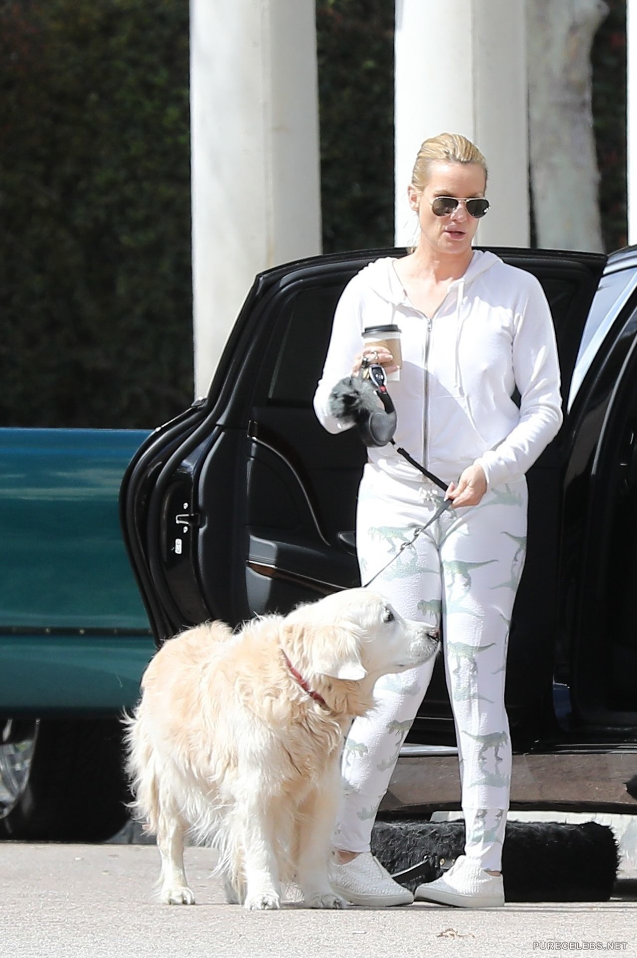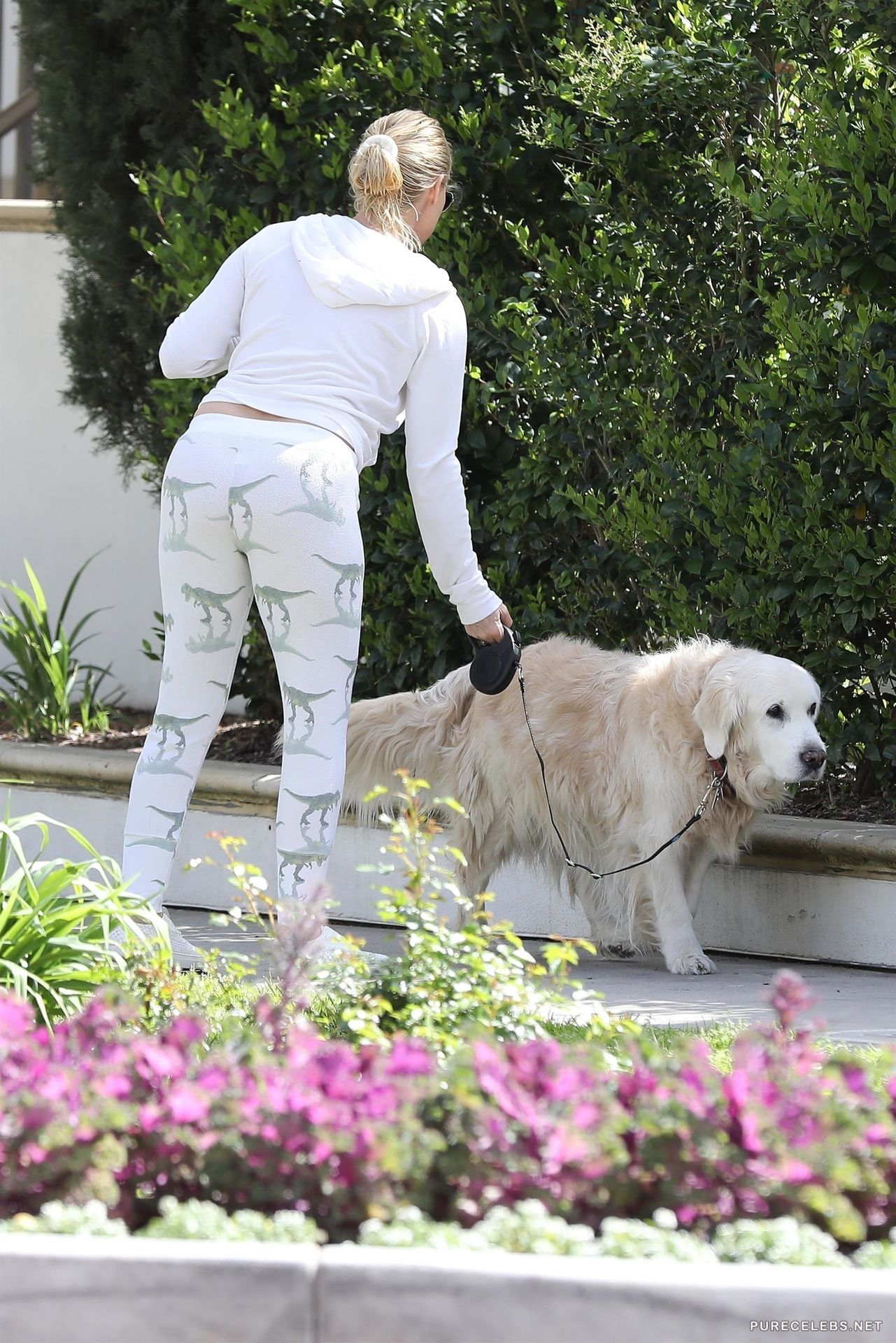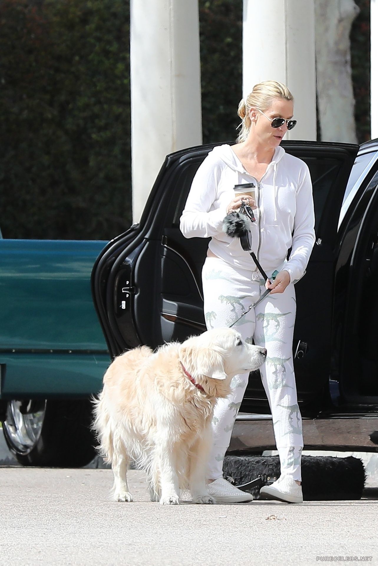 Nicolette Sheridan, an actress, is best known to viewers of Desperate Housewives by her role of hot sexy blonde, and she’s same in life. Recently, the paparazzi caught the actress when she forgot to wear a bra under the clothes. The celebrity was wearing a white tracksuit and through her blouse we can clearly see her amazing boobies with excited hard nipples.