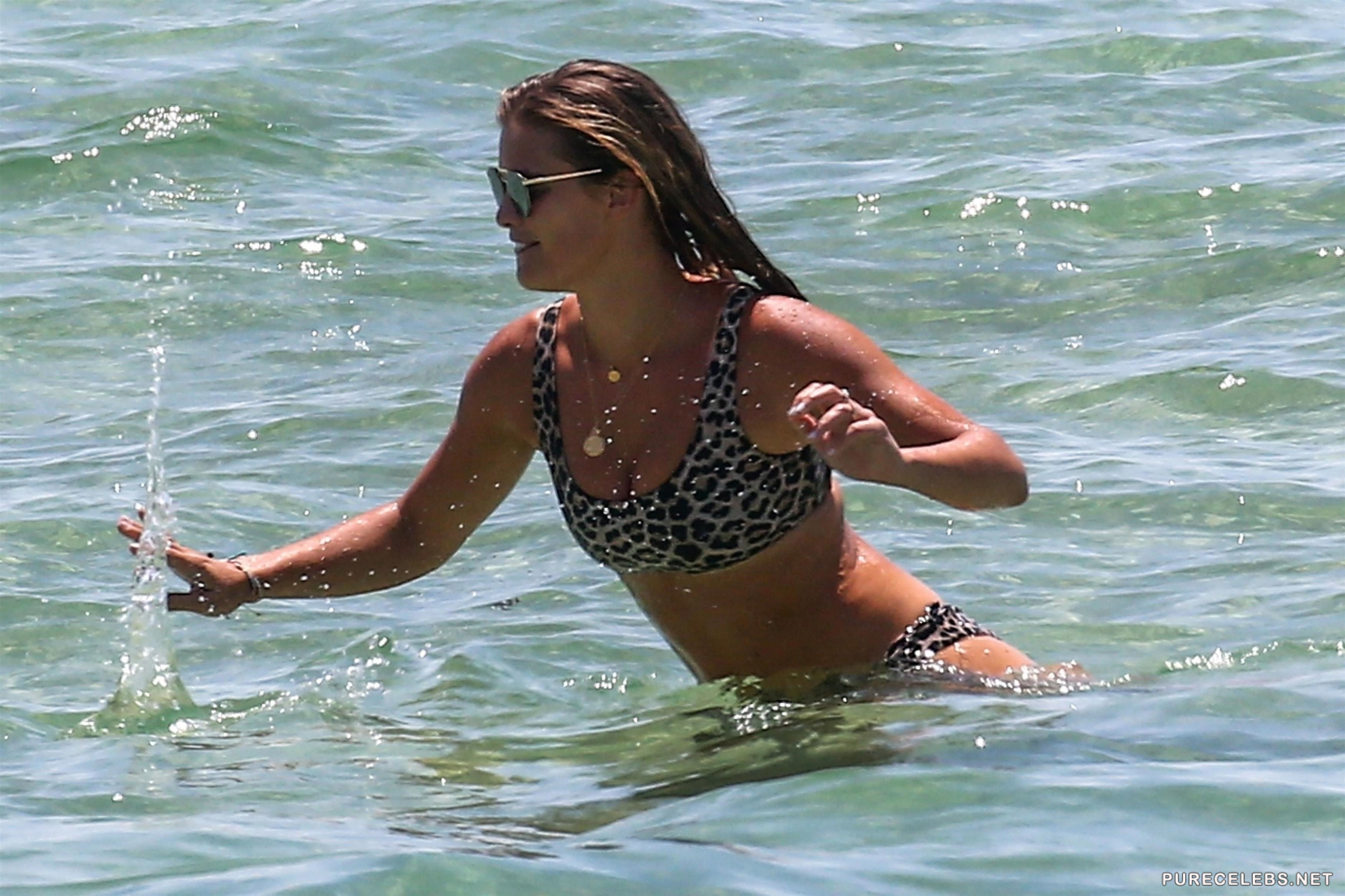 Nina Agdal, a Danish model with amazing gray eyes, looks stunning in a leopard bikini, while relaxing during one of her numerous vacations. Thanks to skilled paparazzi, we get to see variety of sexy photos of this babe, that have nothing to do with her modeling job, that include a nice view at her ass, and another photo of her ass and more of that nice ass, for everyone.