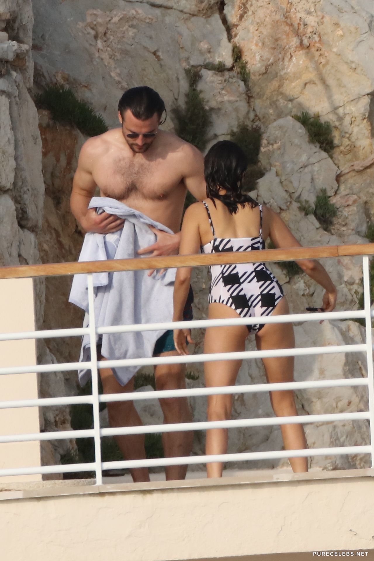 Canadian actress Nina Dobrev is constantly under the watchful eye of the paparazzi. Recently, a hot brunette was noticed on vacation, when she gladly jumped into the pool from the bridge. The celebrity was wearing a tight-fitting white swimsuit, with a black print, in which her wet body looked just gorgeous. It was simply impossible to tear my eyes away from her juicy elastic buttocks. She looked very hot and sexy!
