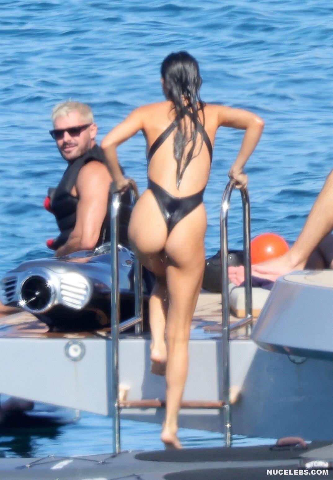 It’s time to check out some new photos of hot Nina Dobrev in a swimsuit! Recently, the paparazzi caught Nina relaxing on a yacht with her friends in Italy. We can’t help but notice that this open black swimsuit fits her figure perfectly. Thanks to the thong, we get a view of Nina Dobrev’s firm naked ass. And her luscious tits just beg to be kissed!