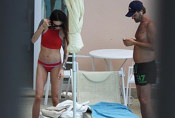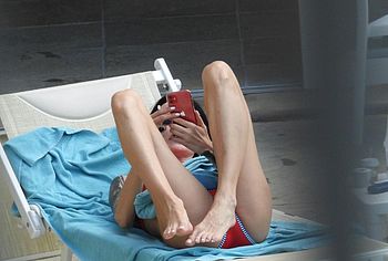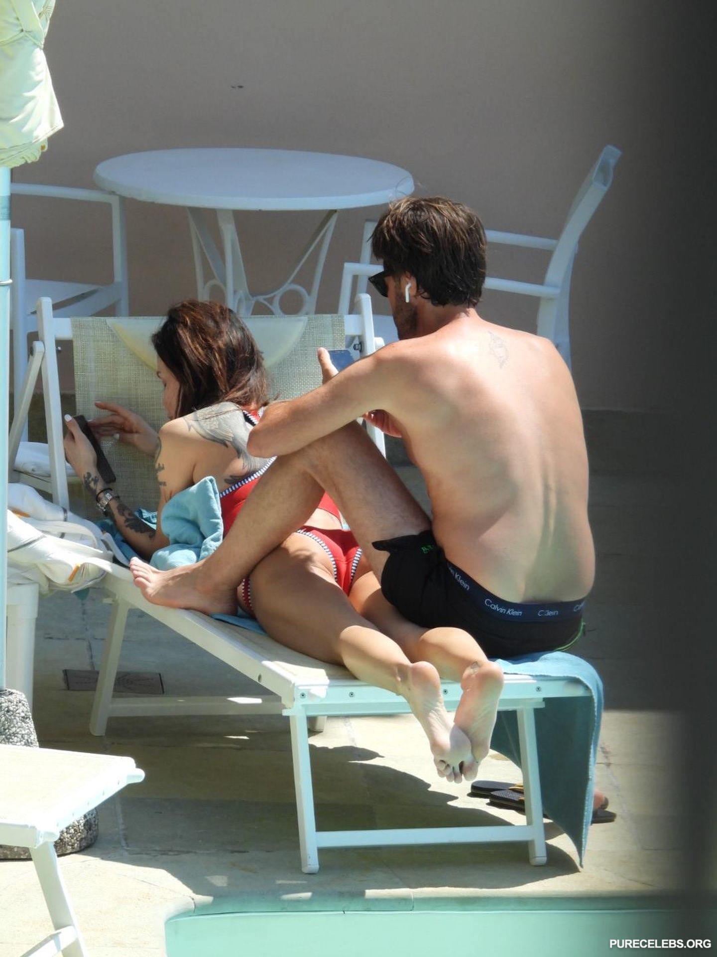 Croatian-Italian model Nina Moric knows how to look sexy under any circumstances. At the same time, Nina Moric does not even need to demonstrate her nude body in order to drive everyone crazy. Paparazzi managed to photograph this beauty when she was sunbathing in a tight red bikini.