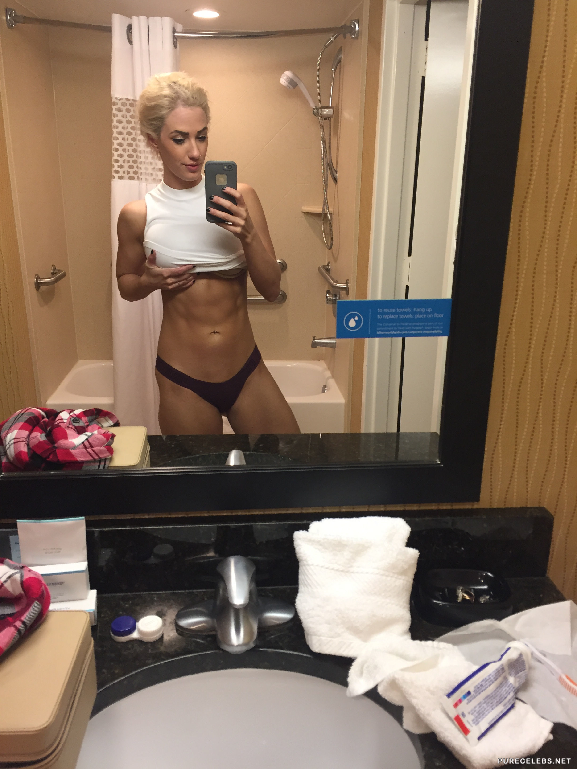NPC bikini superstar Jenna Fail knows all about how to strike a pose. This professional athlete is often in the public eye flexing her muscles for the camera and showing off all the things she has worked so hard for. Her rock hand abs look so sexy while she is naked in a tanning bed and the other homemade selfies she took while completely naked are equally enticing.