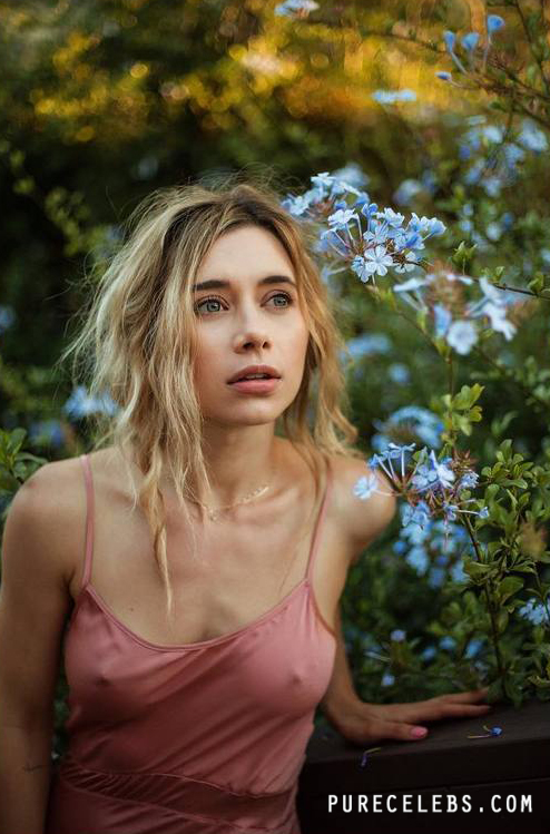 Russian-American actress Olesya Rulin starred in non nude, but very hot photo shoot. This charming blonde with big eyes posed outdoors in a pink top and green skirt. As we can see, the celebrity was braless. Therefore, Olesya Rulin nipples poked through the thin fabric of her top. It was exciting, what do you think?