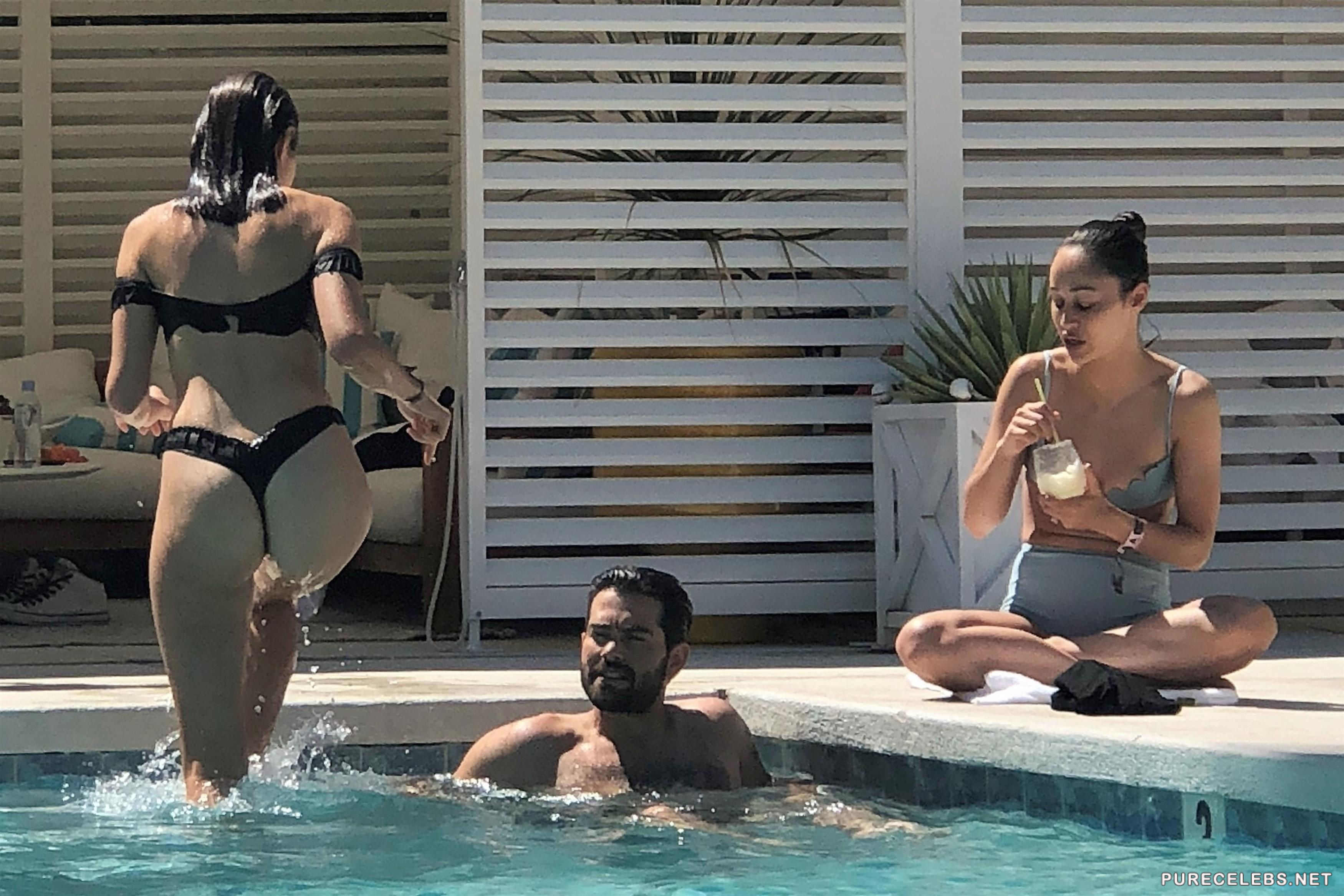 Two marvelous American celebrities are here to rock your world. Meet Olivia Culpo and Cara Santana, we love these super hot ladies so much. Olivia is a very successful fashion babe and Cara Santana is known for her roles in Lipshitz Saves the World and Beverly Hills Chihuahua 3. Great looking hotties meet by the pool and reveal their sexy bodies in thongs. Don’t miss their beauty!