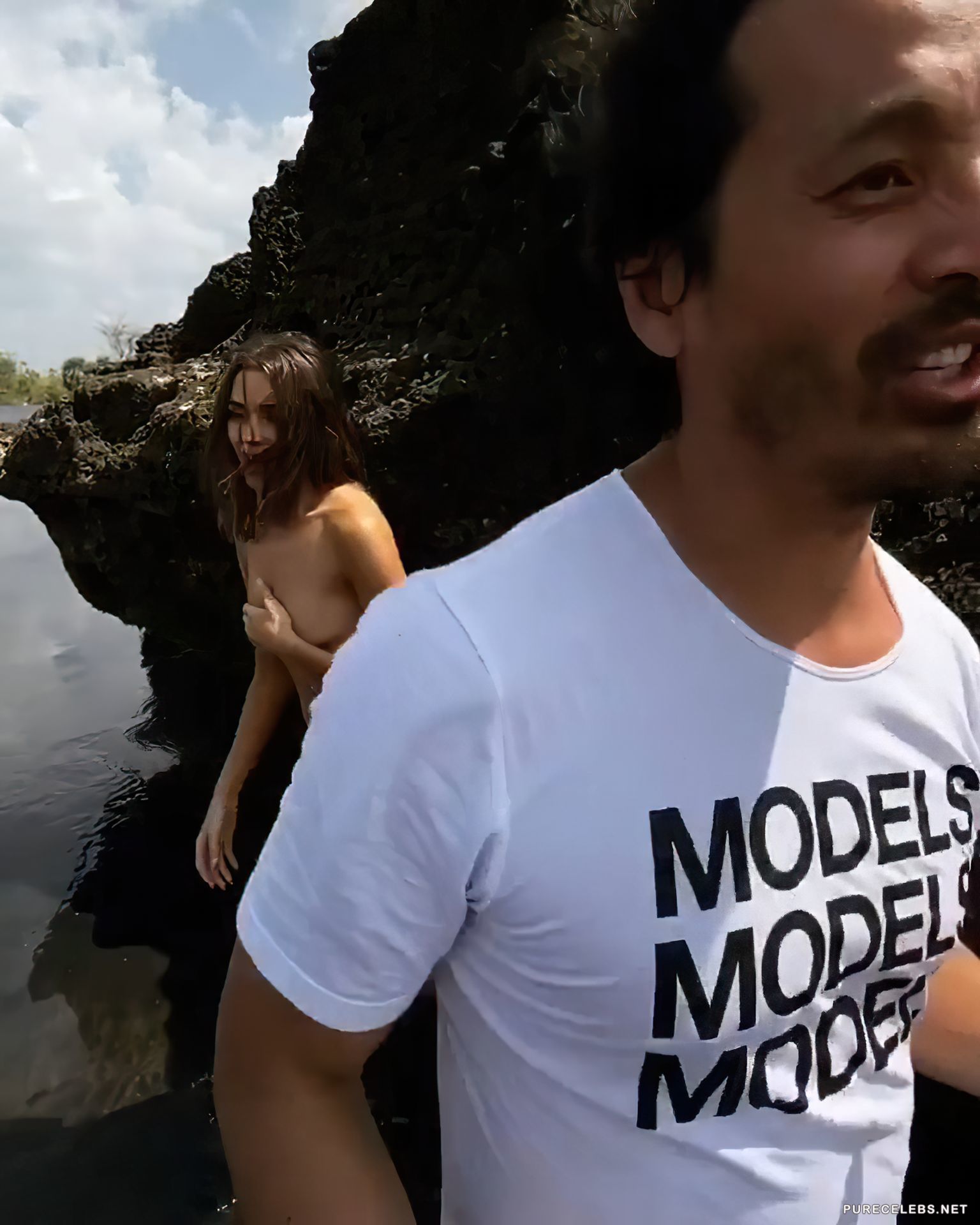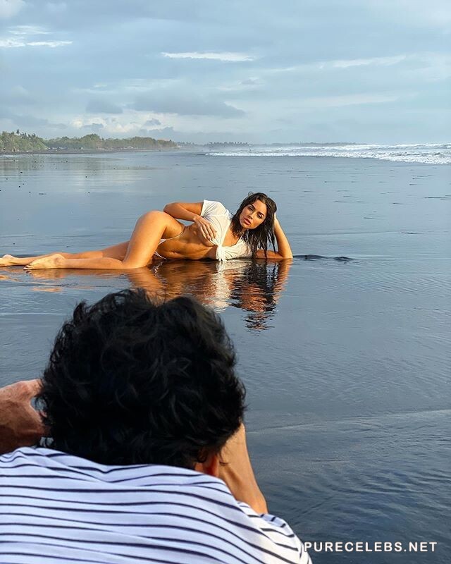 American model Olivia Culpo took part in a very hot beach photo shoot, and you definitely should see it! This charming beauty felt confident enough, lying on the seashore in a small white bikini, which hardly covered her gorgeous body. In addition, this hot babe without a shadow of embarrassment took off her bra and posed near the rock, covering her chic boobs with her hands. She looked breathtaking, isn’t she?