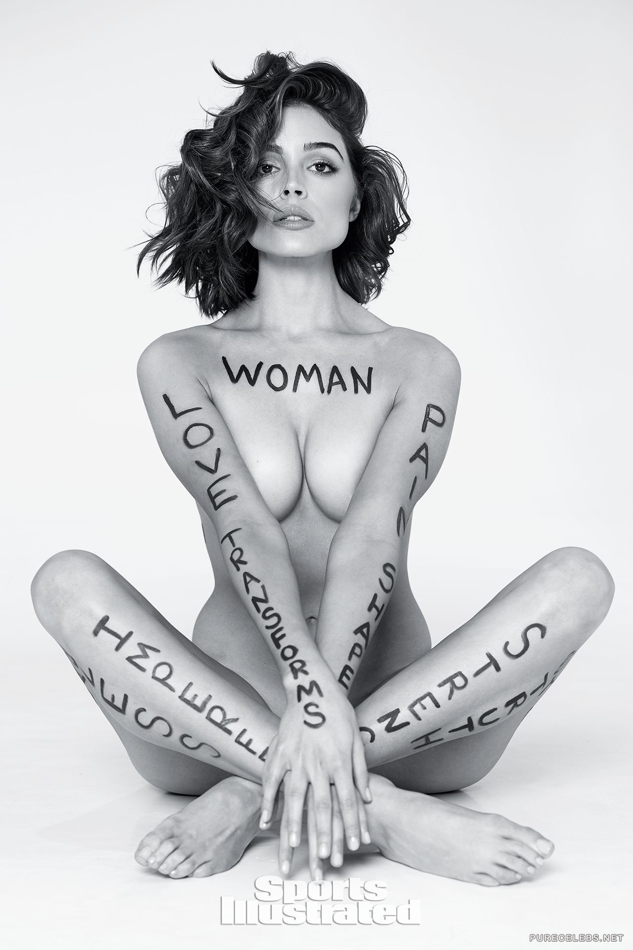Former Miss Universe, Olivia Culpo took time away from her busy schedule to pose for Sports Illustrated magazine completely nude. The gorgeous beauty queen was featured in a series of black and white erotic photos in various poses, with her body covered only in writing. Her gorgeous naked ass looks absolutely stunning in these classy photos, we only regret that Olivia covered her little nipples with the palms of her hands.
