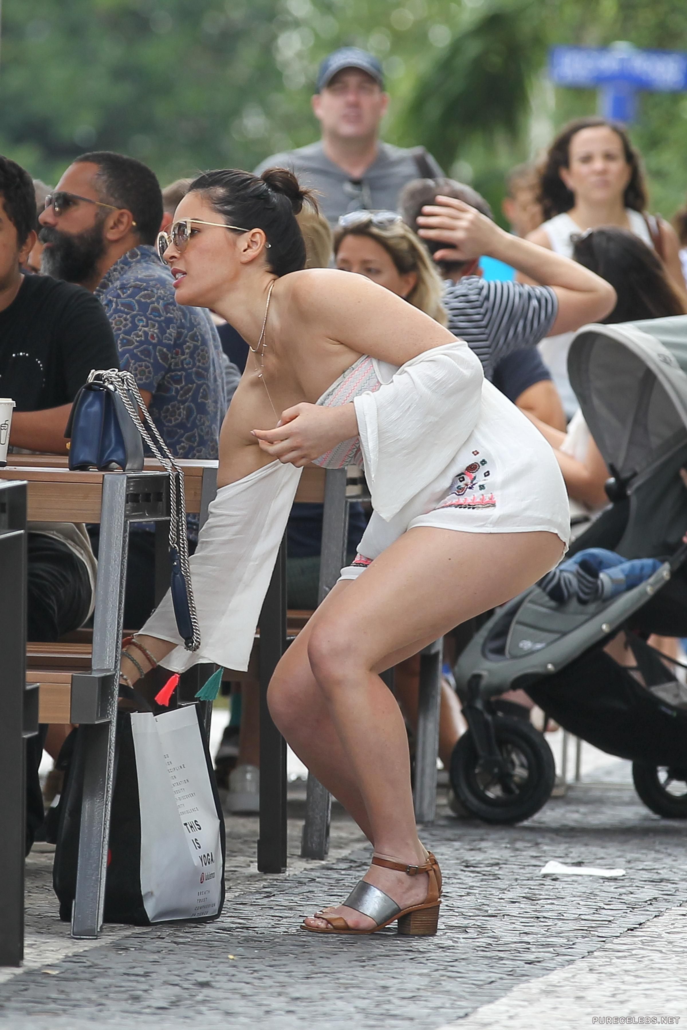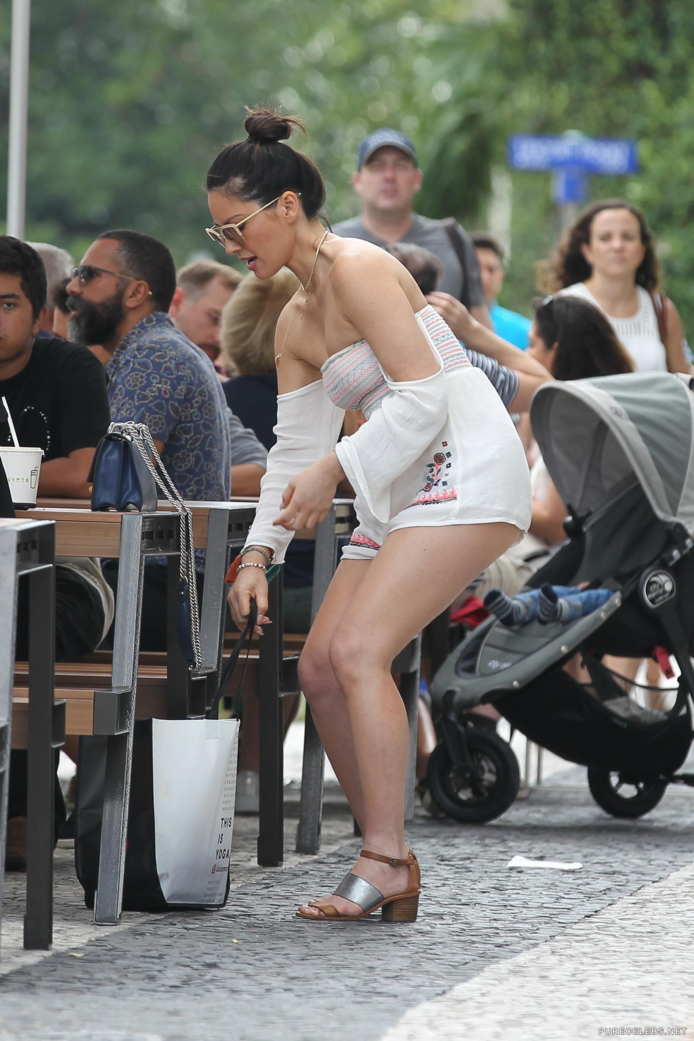 Since she became a celebrity Olivia Munn can’t get a moment of peace. Paparazzi follow her every step and patiently wait for the opportunity to photograph her lovely body. This time she was spotted during a shopping trip wearing a tube top that hugged her body so tightly her perky nipples poked out. Olivia must have been excited judging by the two hard nipples protruding out of her top.