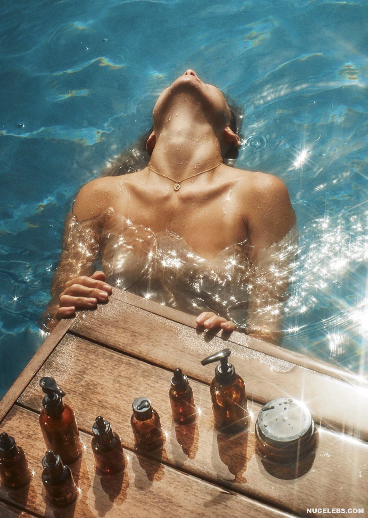 Olivia Wilde starred in a stunning photo shoot for True Botanicals. There you can see this star in see through outfits. So, this American actress posed in a wet white T-shirt, through which her tits with dark nipples showed through. Plus you can see Olivia Wilde totally nude in this photo shoot! For example, she showed off her awesome bare buttocks, sitting on the edge of the pool. And in other photos, Olivia Wilde was lying by the pool absolutely nude!