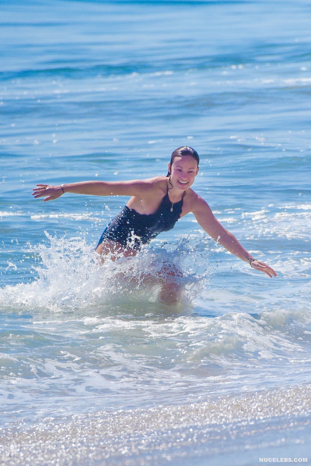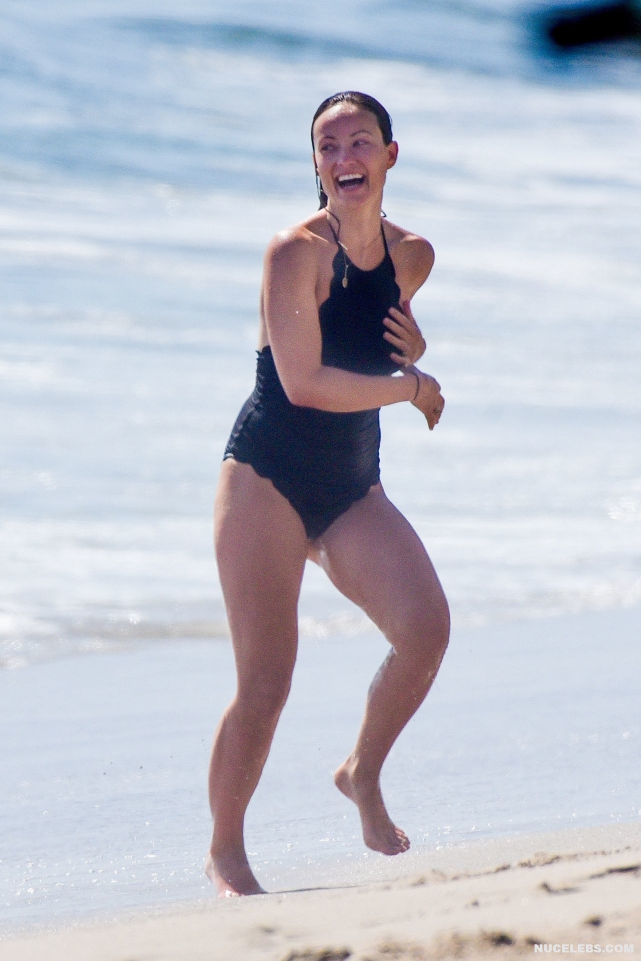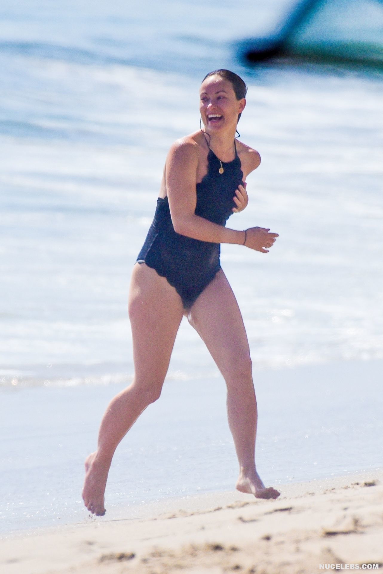 Paparazzi rarely manage to catch Olivia Wilde nude. But they managed to take very hot pictures of this actress during her beach vacation. Needless to say, this star in a black swimsuit looked great splashing in the sea. The top of the swimsuit perfectly covered Olivia Wilde’s nude boobies. But her sweet ass in a narrow swimsuit bottom was almost naked. The celebrity happily flaunted her wonderful buttocks, running along the beach.