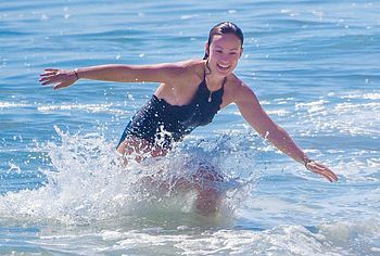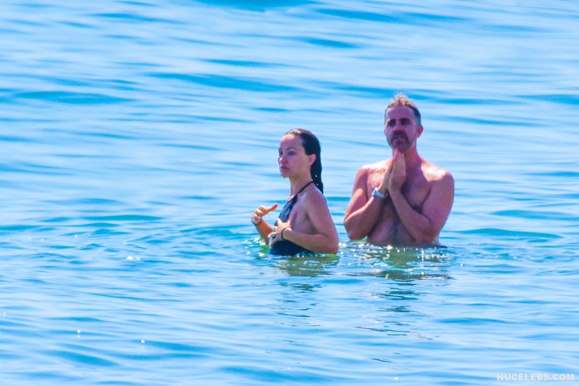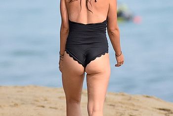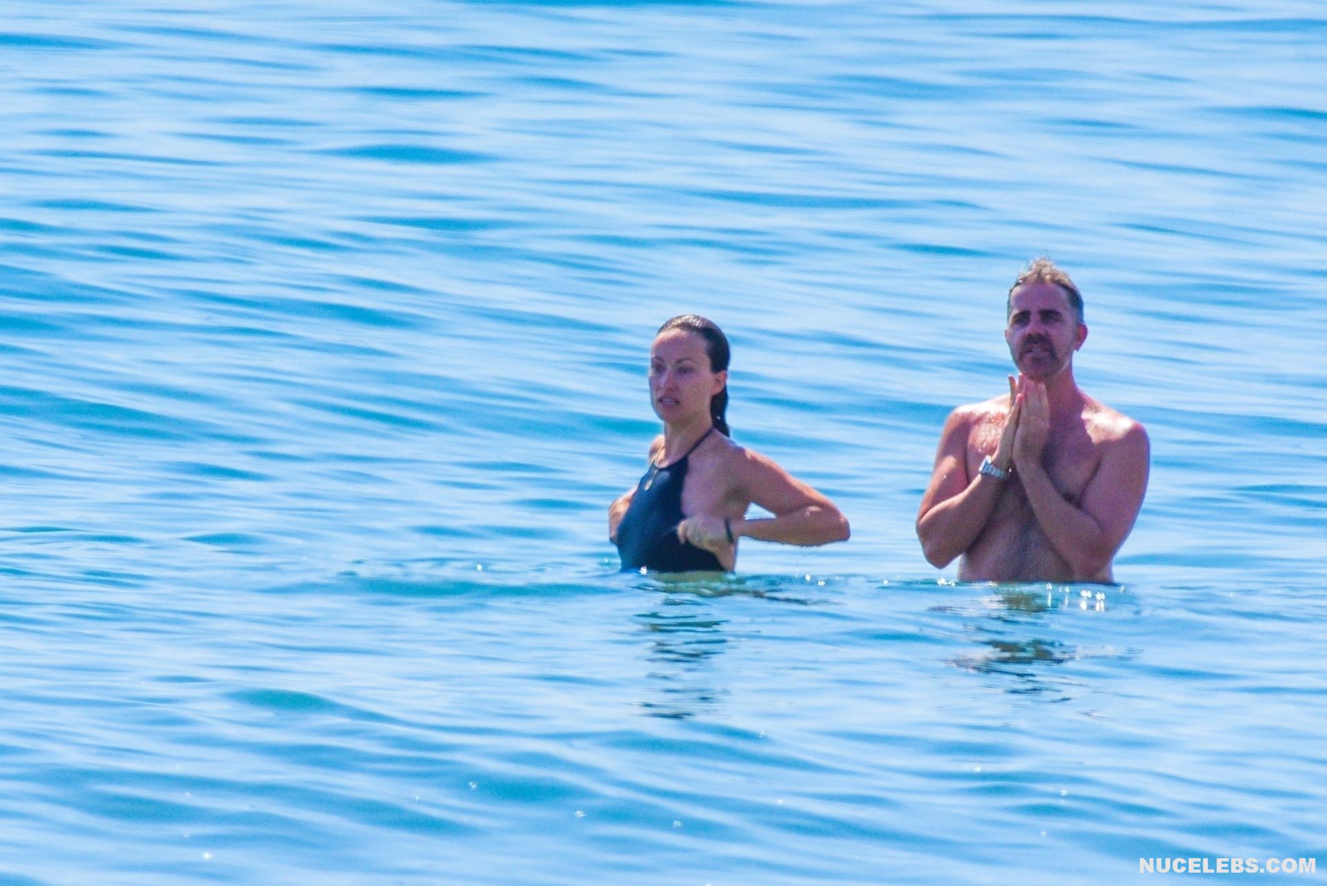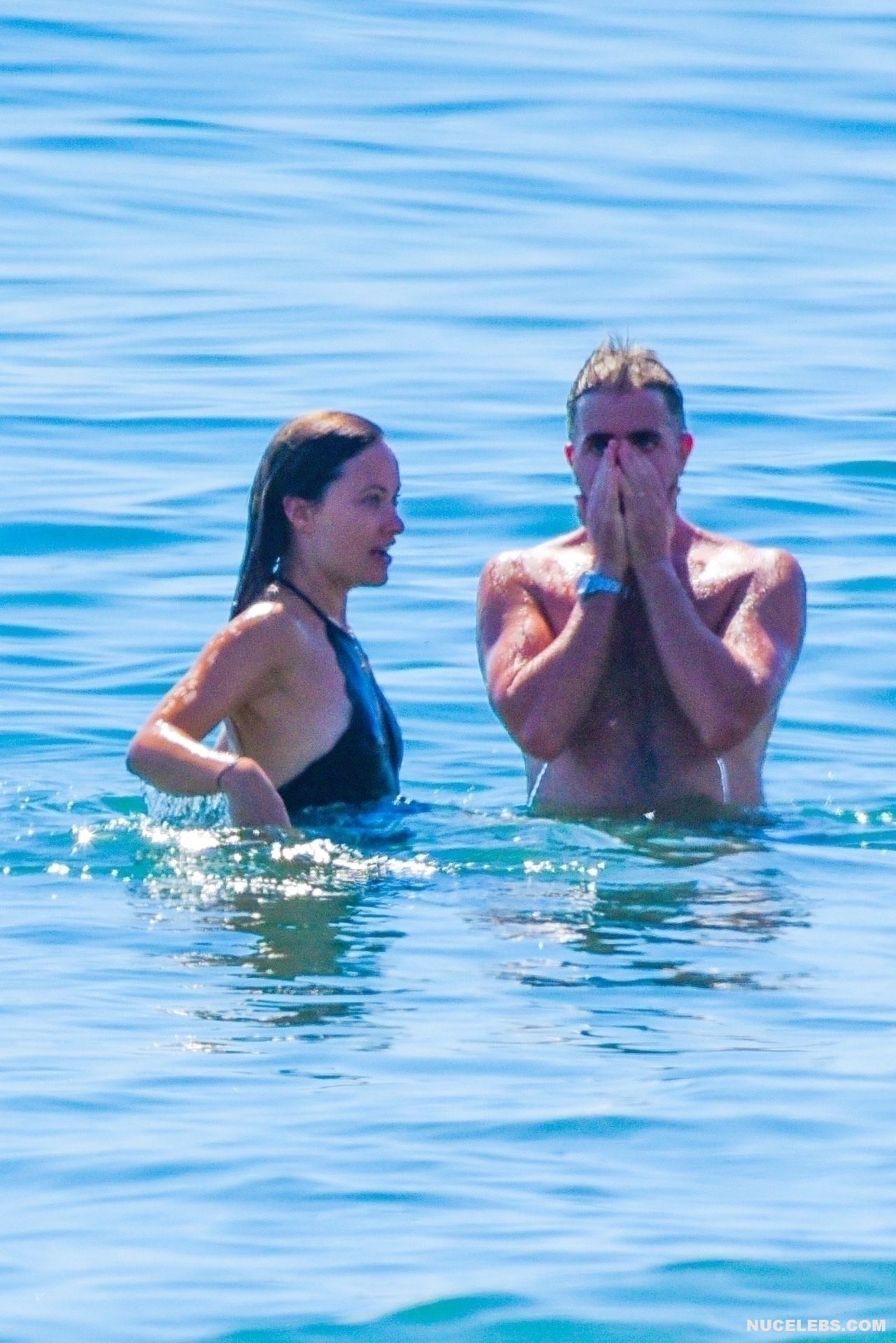 Paparazzi rarely manage to catch Olivia Wilde nude. But they managed to take very hot pictures of this actress during her beach vacation. Needless to say, this star in a black swimsuit looked great splashing in the sea. The top of the swimsuit perfectly covered Olivia Wilde’s nude boobies. But her sweet ass in a narrow swimsuit bottom was almost naked. The celebrity happily flaunted her wonderful buttocks, running along the beach.