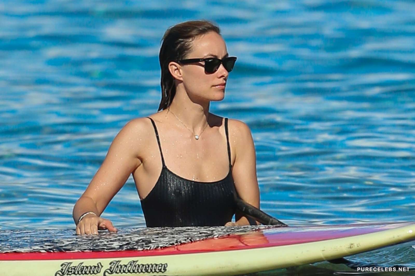 Olivia Wilde loves to go surfing when she is on holiday and paparazzi reporters just love taking photos of her wet body in bathing suits. This time she wore a thin black bathing suit which gave reporters a perfect shot of her hard nipples poking through the fabric. They also got some premium shots of this brunettes fine wet ass. These sexy photos are sure to keep you up at night.