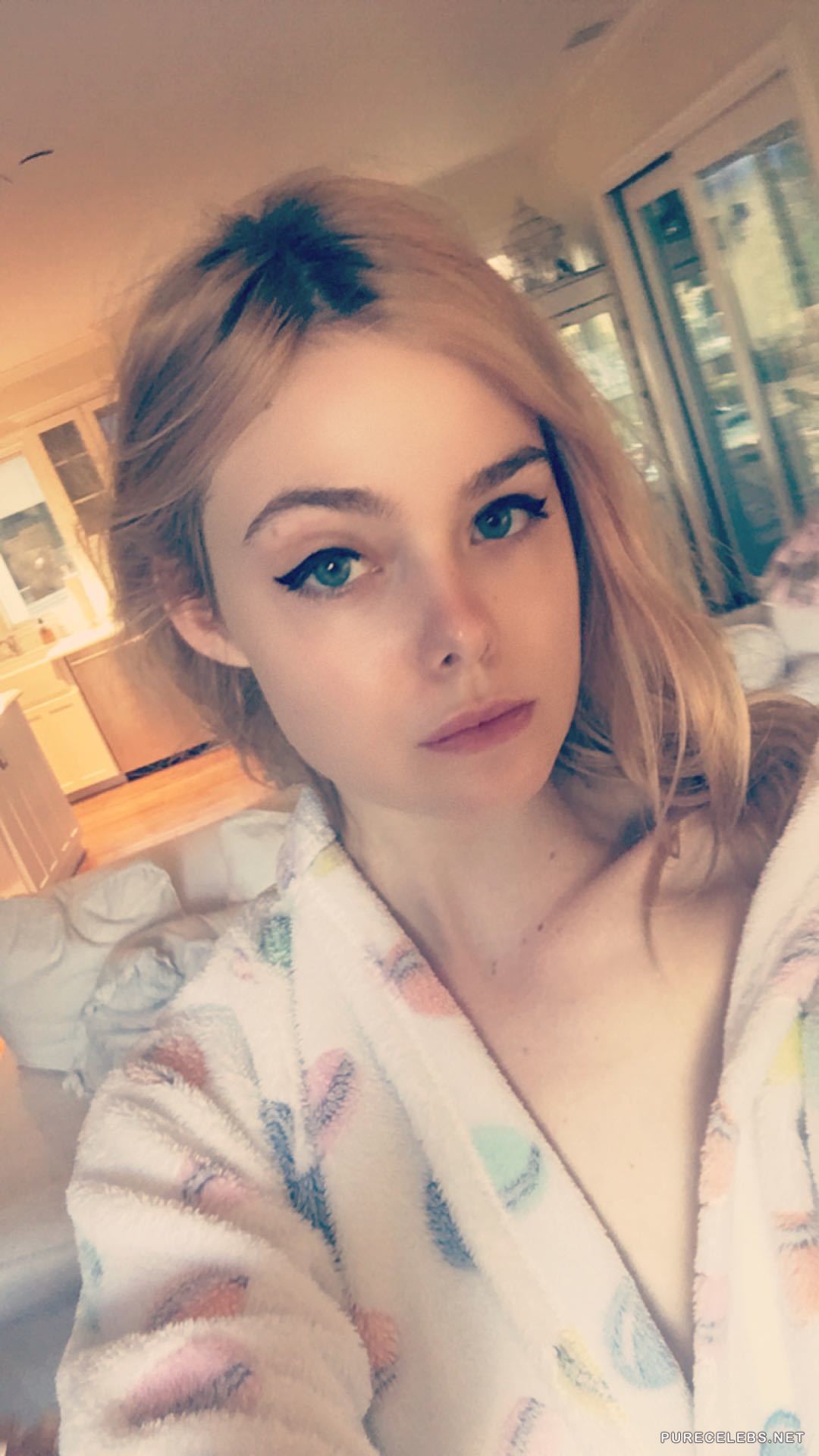 American actress Elle Fanning loves to take candid and provocative photos, and therefore often finds herself in the center of hacker scandals with the fappening photos. In one photo, a star poses completely naked in some black thongs, shows off her wonderful plump ass and covers her awesome boobies with her hand. And in another photo you can see her amazing hard nipples that she shows off for your viewing pleasur.