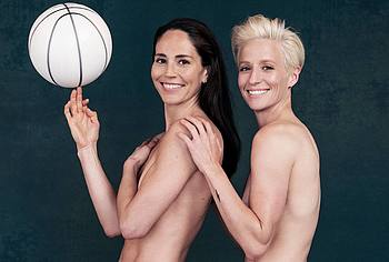 Openly gay couple Sue Bird and Megan Rapinoe recently starred in a very candid photo shoot for ESPN. These charming beauties felt confident enough to take off their clothes and pose in front of the camera completely naked. The girls gently hugged and it looked very moving and sexy. Their juicy butts and beautiful boobies just took your breath away! These hot beauties will definitely be able to spark your imagination!
