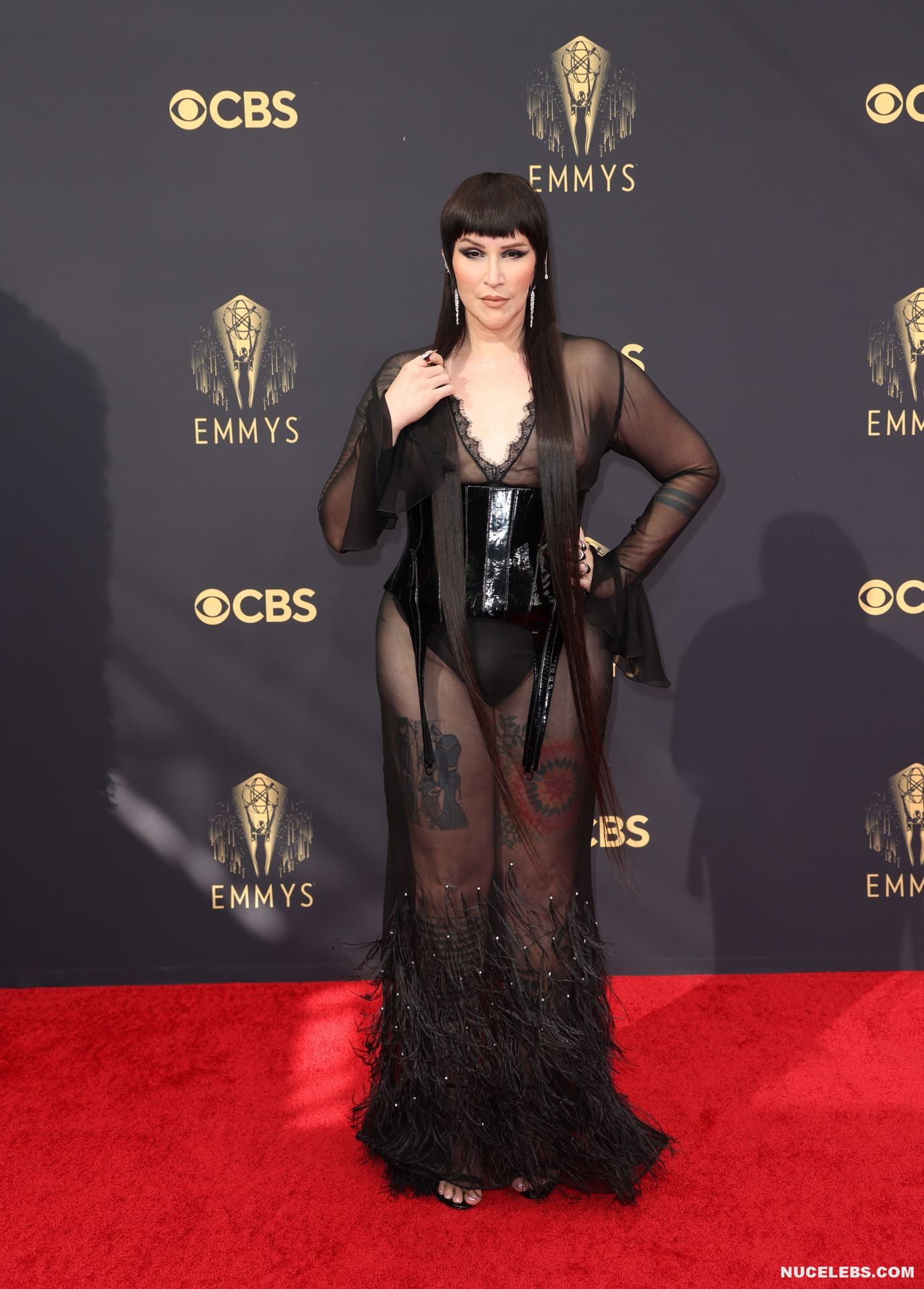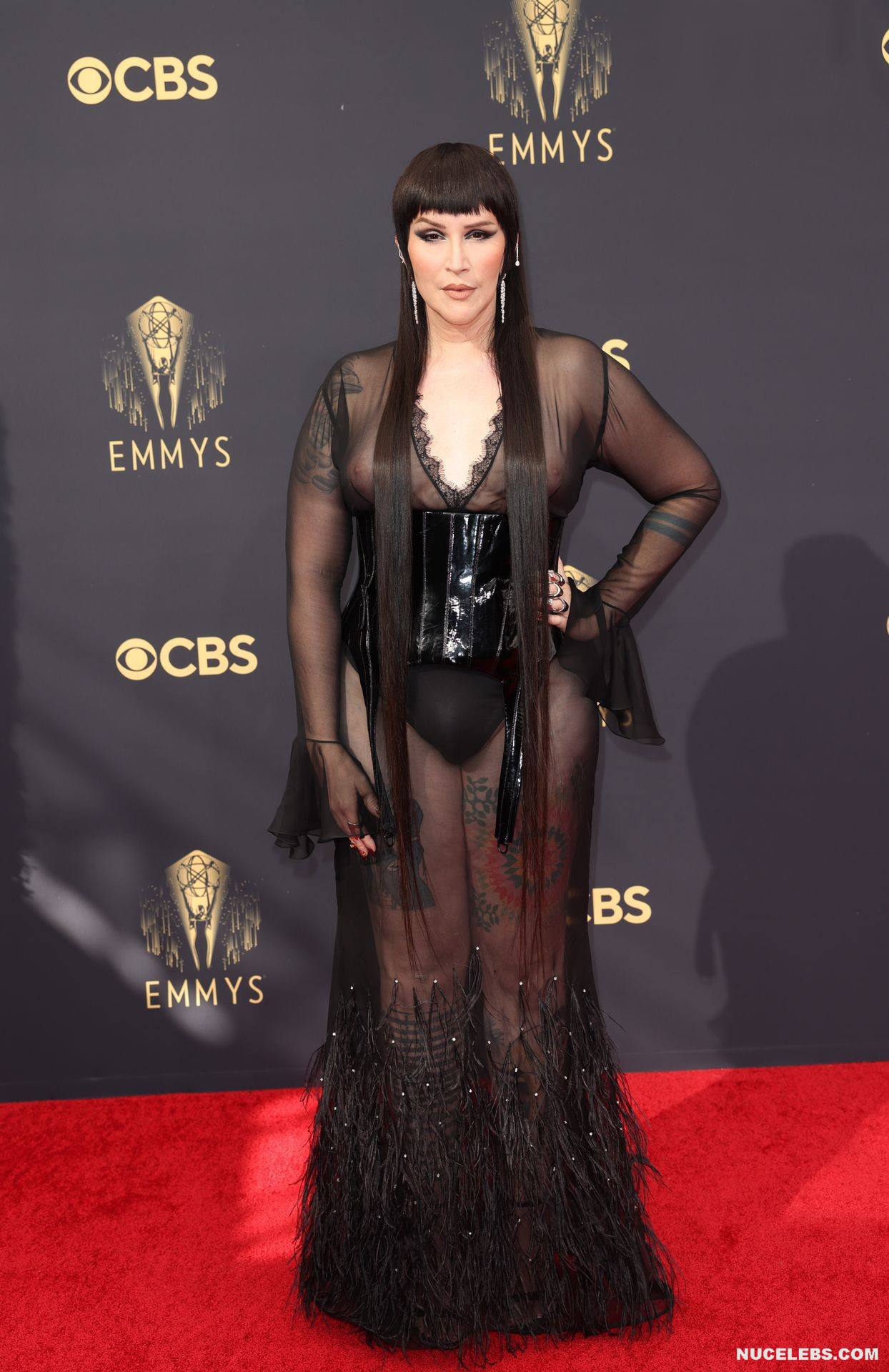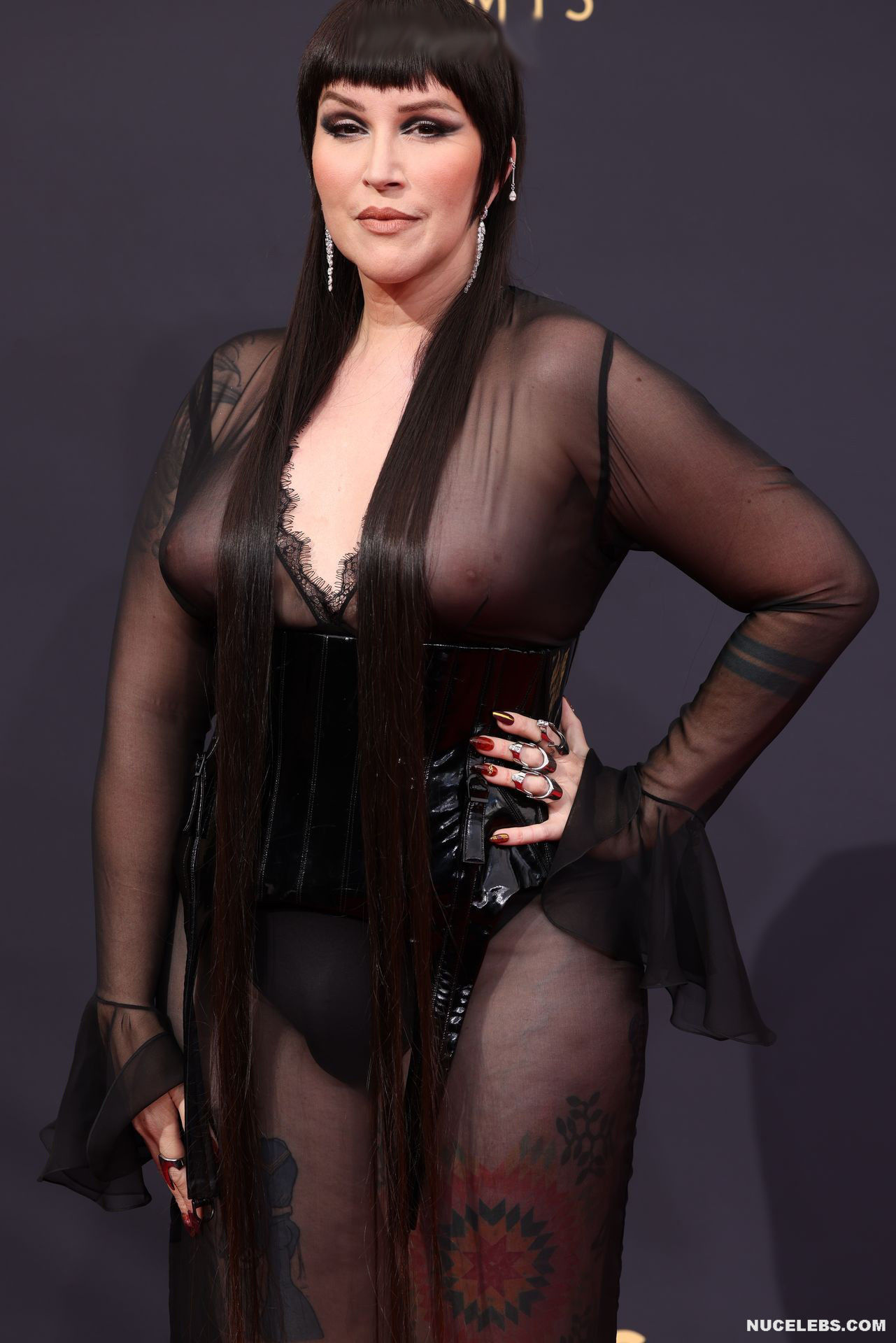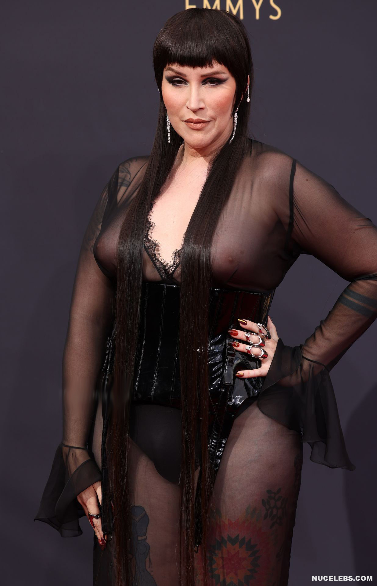Our Lady J decided to showcase not only her musical talents, but also her nude boobs at one of the events. And for this she went out in public in a long black dress with transparent inserts. At the same time, everyone could see the plump legs of this American pianist through the transparent fabric. And since Our Lady J was braless, her nude huge juicy tits were also on display!