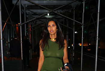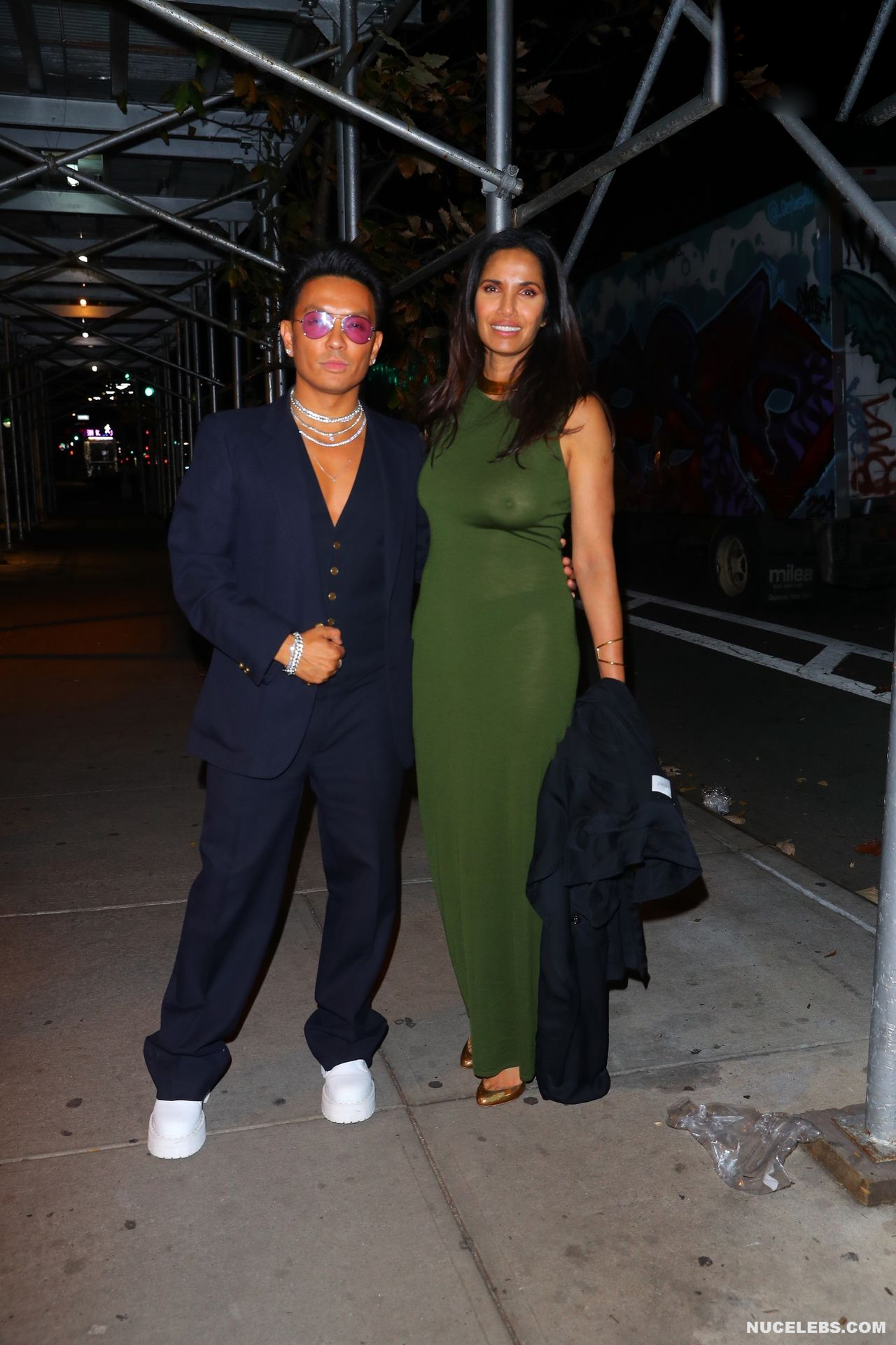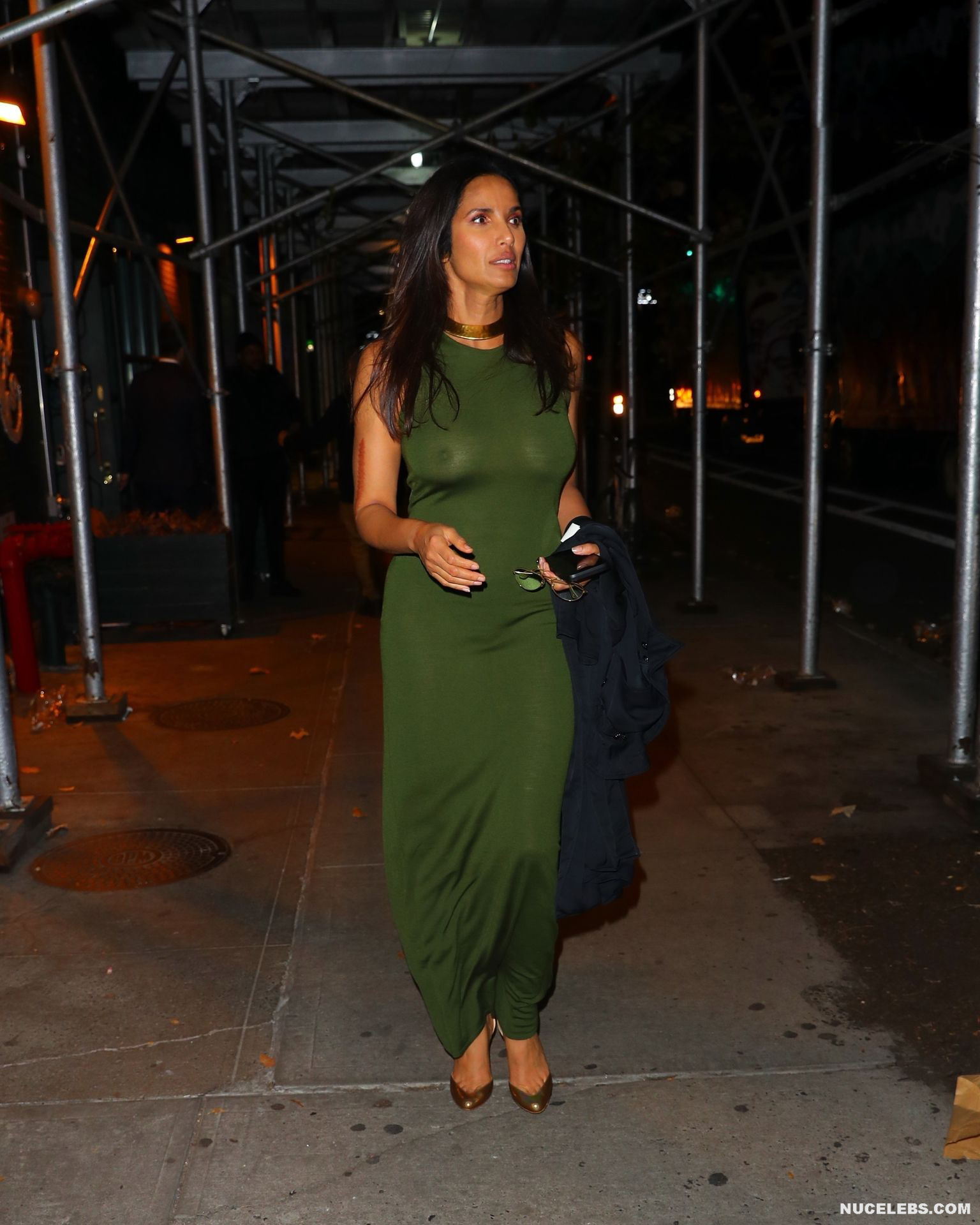 Padma Lakshmi has become another celebrity who is not shy about showing off her awesome boobies in front of the camera. This American TV presenter looked stunning in a formfitting green dress that showed off her narrow waist and hips. And of course you won’t be able to take your eyes off Padma Lakshmi’s nude sweet titties with small nipples clearly visible through the sheer fabric.