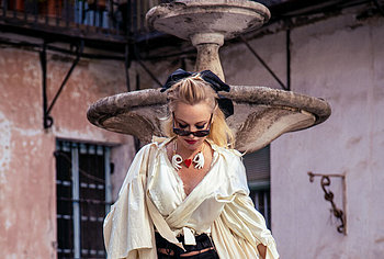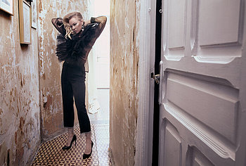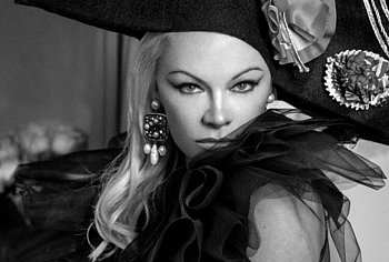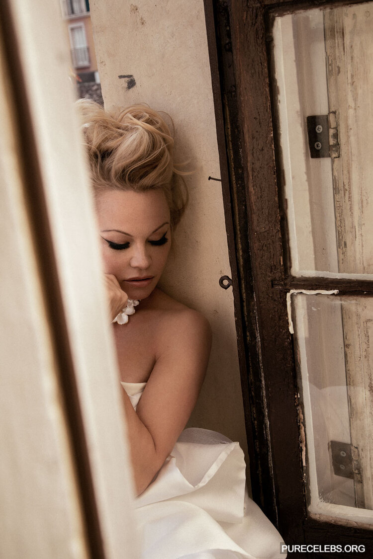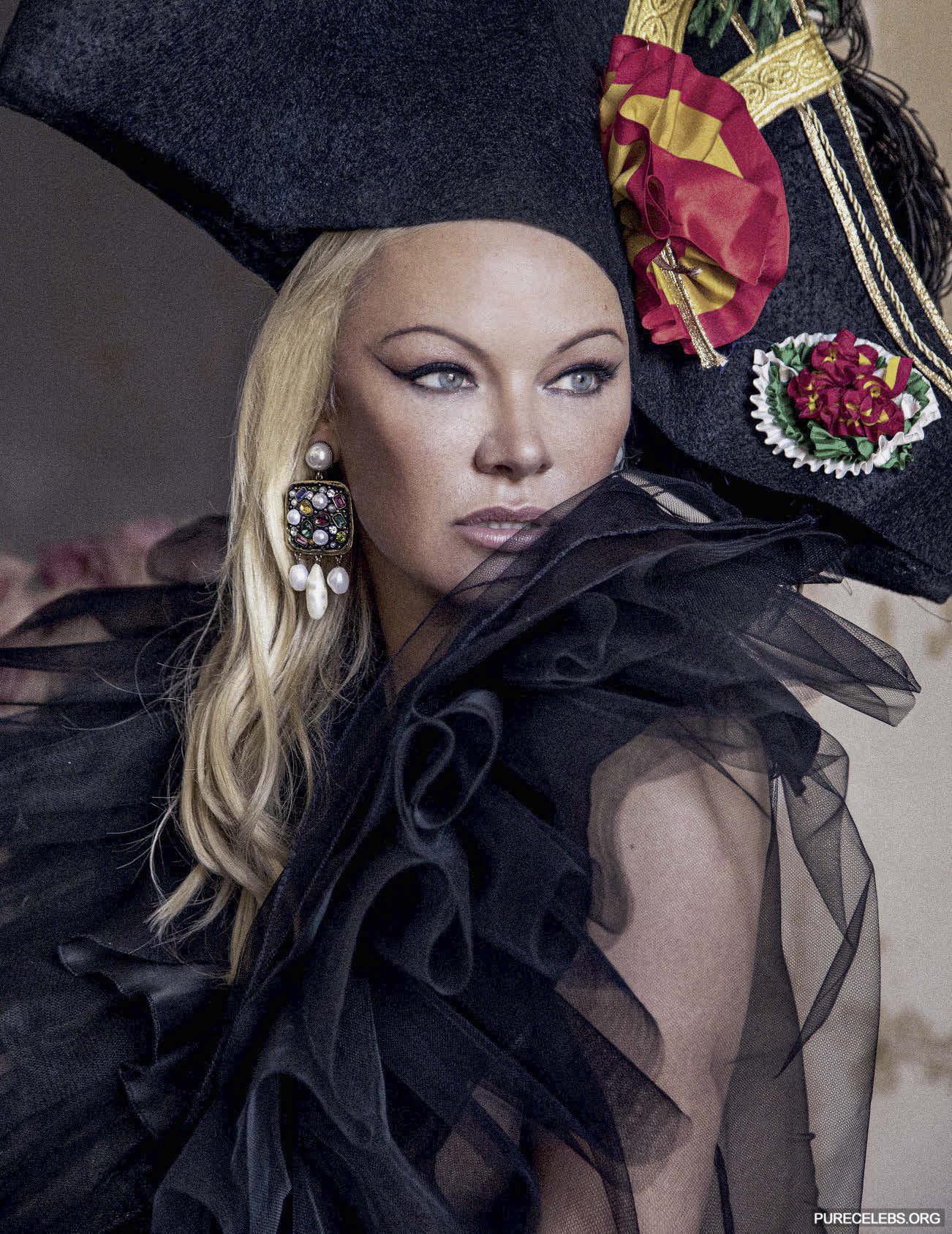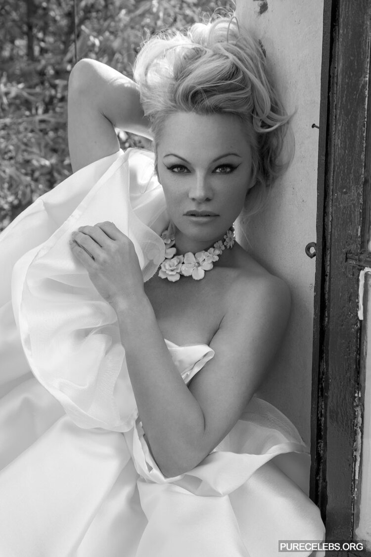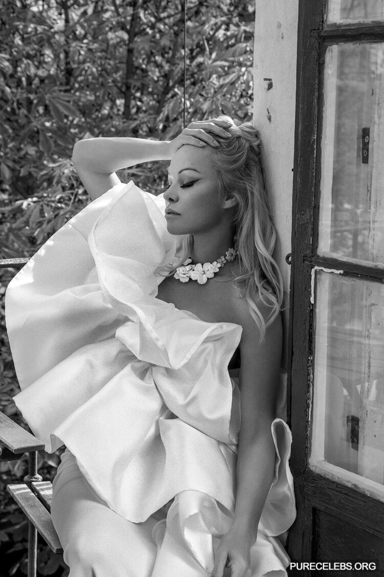 Pamela Anderson has repeatedly demonstrated her awesome nude boobs to the whole world. And recently, this hot blonde starred in a photoshoot for Vanity Fair Magazine 2020. This celebrity posed in very explicit outfits. For example, her black dress barely covered her sweet butt and wonderful breasts. But Pamela Anderson did not stop there and stripped naked. Her image was very unusual, where she poses naked while sitting in a white chair and with curlers on her head. The actress covers her huge melons with her hand and it looks very erotic!