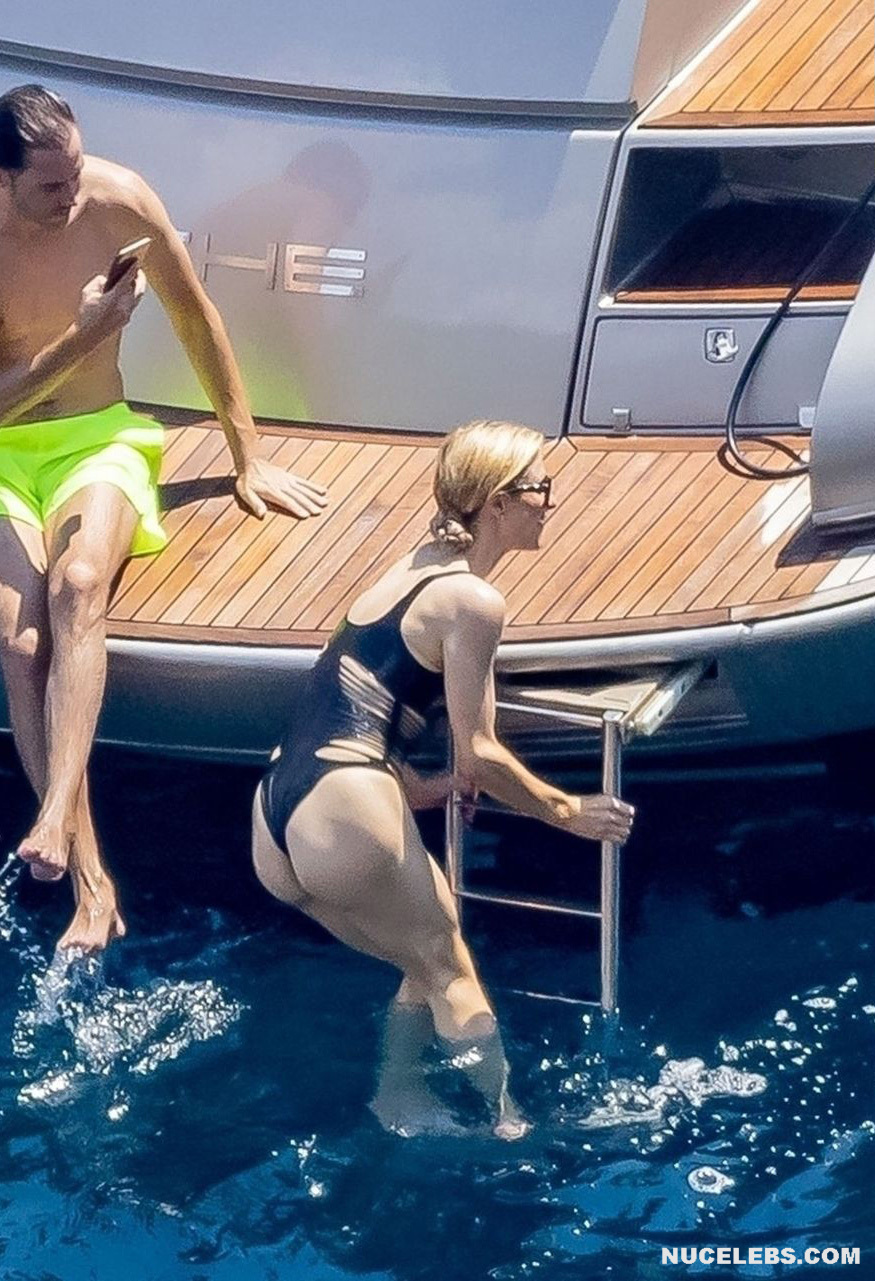 The paparazzi took a lot of Paris Hilton hot photos from her vacation on the yacht. This charming blonde was dressed in a black swimsuit with seductive slits on the sides. So, Paris Hilton juicy boobs were only partially covered. And when she climbed out of the water onto the yacht, her awesome booty in the narrow bottom of her swimsuit was breathtaking!