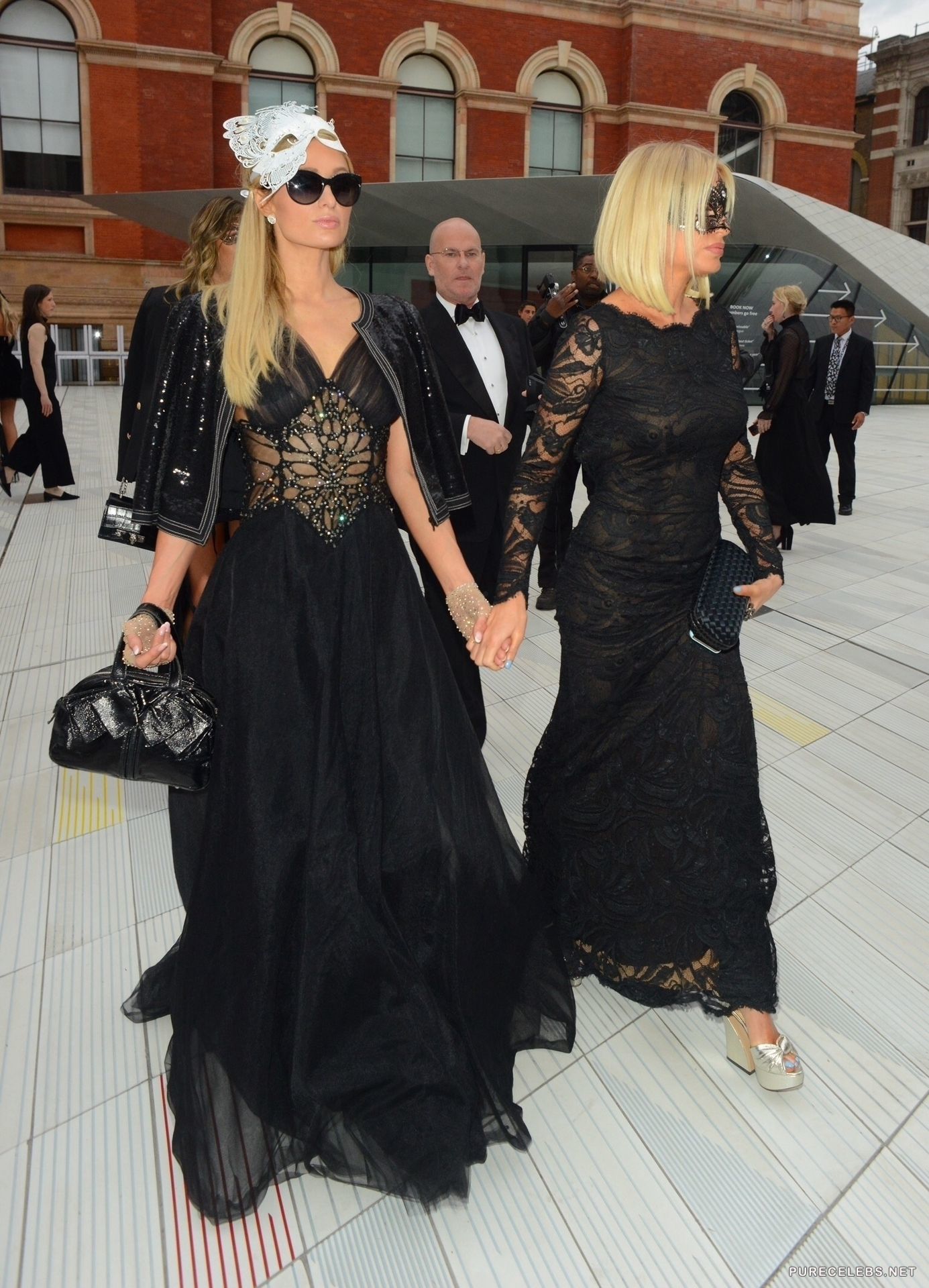 The American fashion model Paris Hilton loves to shock the public by appearing at various events in unusual outfits. This time a bright blonde arrived at the event in a mask and a long black dress. It is worth noting that the star did not put on her bra, and we could clearly see her wonderful big boobs with dark nipples through her translucent dress. This girl knows how to attract attention!