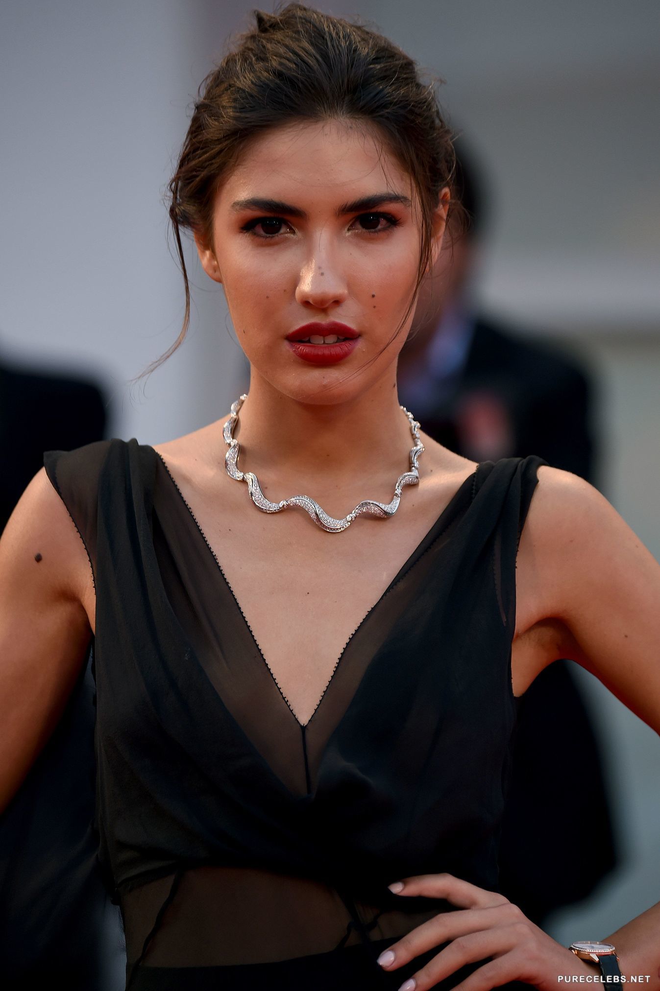 The famous stylist and fashion icon Patricia Manfield was photographed at a red carpet event wearing a sheer black dress which showed off her perky nipples. Her breasts were left to hang freely for everyone to see and the fashionista was happy to pose for photographers while proudly displaying her bust. The see through dress was the perfect choice to attract attention to her desirable body.