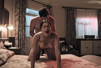 Get ready for this scene from “The Dead Girls” featuring naked Paulina Gaitan, because it will get your pulse racing. This beauty knows how to take the initiative and came to the man herself, dropping her towel. At this moment, Paulina Gaitan’s nude hairy pussy is right in front of us. No one could resist such beauty, so the man pounced on Paulina and fucked hard. She was so insatiable that they repeated the fuck several times, only now in a doggy style position. Just look at how Paulina Gaitan’s juicy boobs move with every thrust into her pussy!