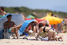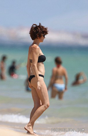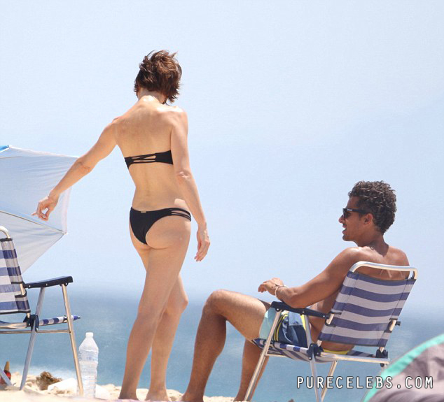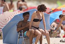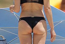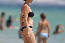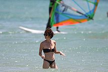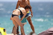 Spanish actress Paz Vega thought she was safe at this beach during her vacation, but the watchful eye of the paparazzi was upon her. Despite being 40 years of age, she’s still holding up and looking great, judging by these candid photos. With long legs and a slender frame, she looks juicy in her black bikini, especially when bending over and showing off her ass.