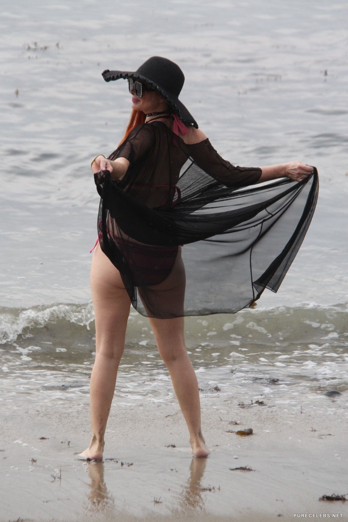 When a big titted woman is proud of her chest size, she will use every opportunity to show it off, in a bikini, in a sheer robe or some other way, striking poses and smiling in a seductive way, just like we see Phoebe Price doing for a group of paparazzi, while enjoying on the beach, because for a celebrity even a vacation is time to work a little bit.