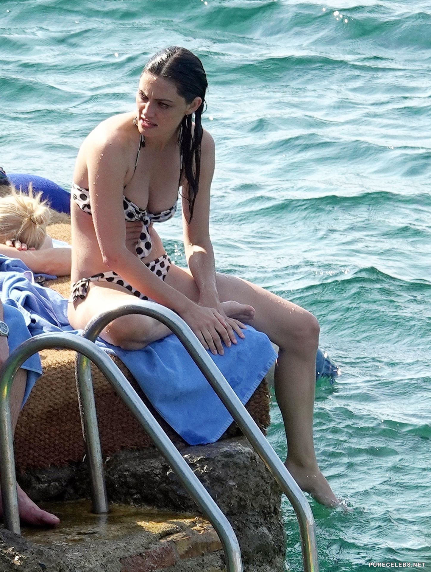 Phoebe Tonkin just loves to splash in the water, judging by her latest photos from a vacation on a yacht. Brunette, dressed in white and black polka dot bikini, looked just incredible when jumping into the water from a yacht. From her awesome tits in tight bra was just impossible to take off the eyes, and her ass looked just breathtaking. Drops of water flowed over the hot body of a beauty, and you just can not resist her!