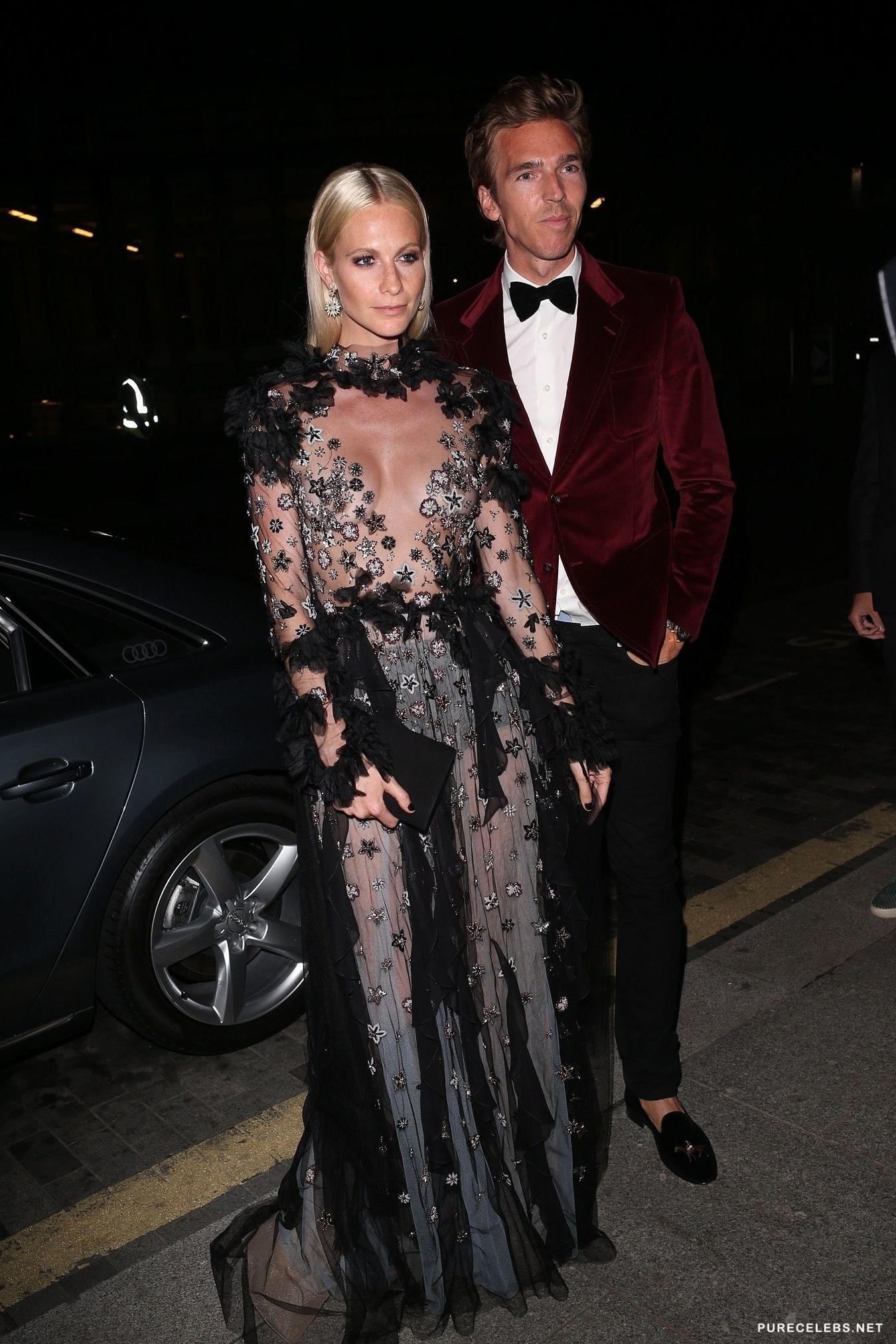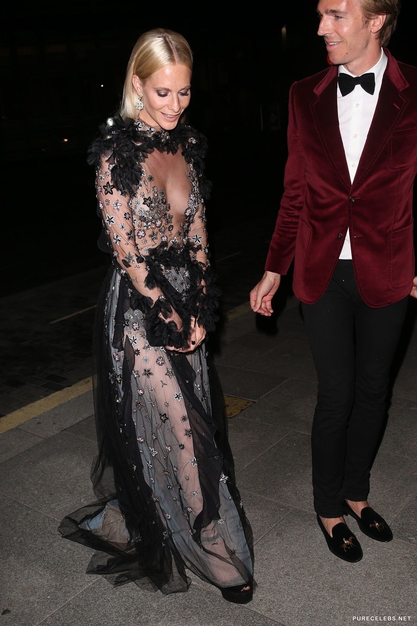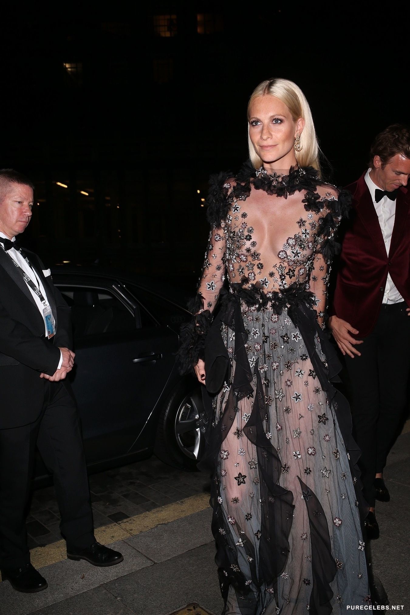 You may remember her from the recent Kingsman: The Golden Circle spy movie for her sexy role as Clara. Coming from a family of celebrities Poppy is no stranger to red carpet events. The attractive blonde actress and model graced the red carpet in a sheer black dress only to reveal her beautiful cleavage to the public eyes. Reporters and fans alike welcomed the sight of her perky breasts and were happy to photograph them.
