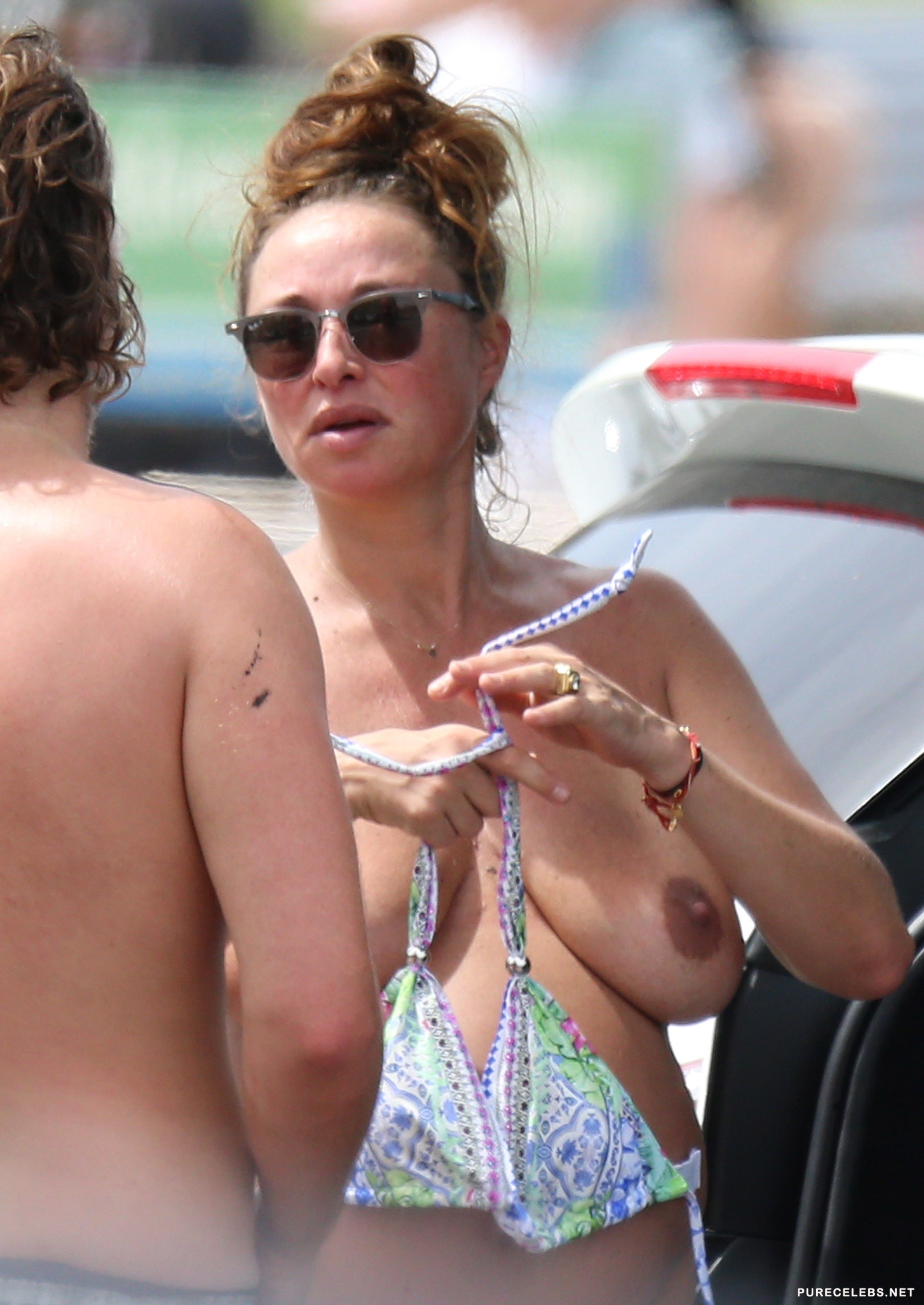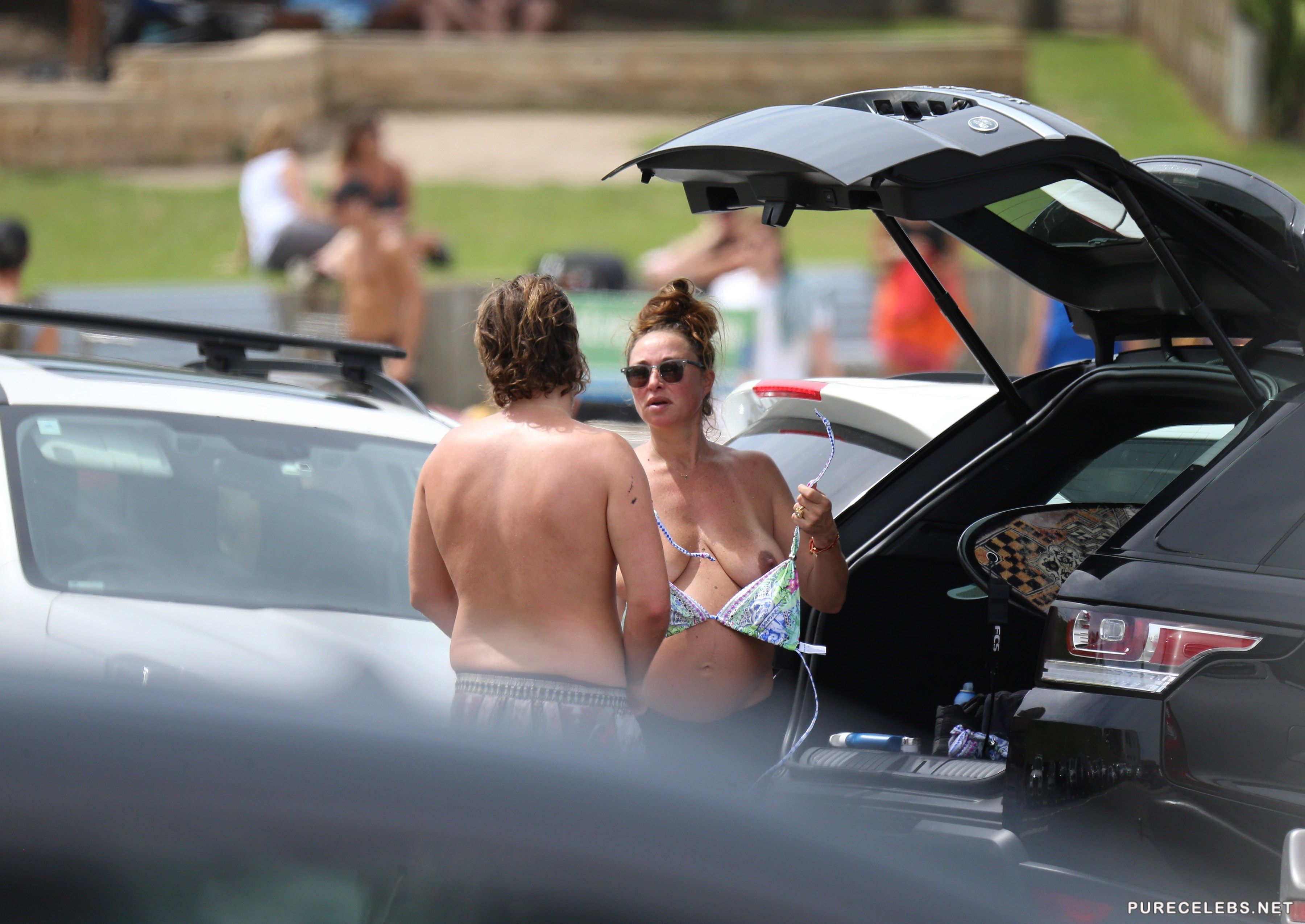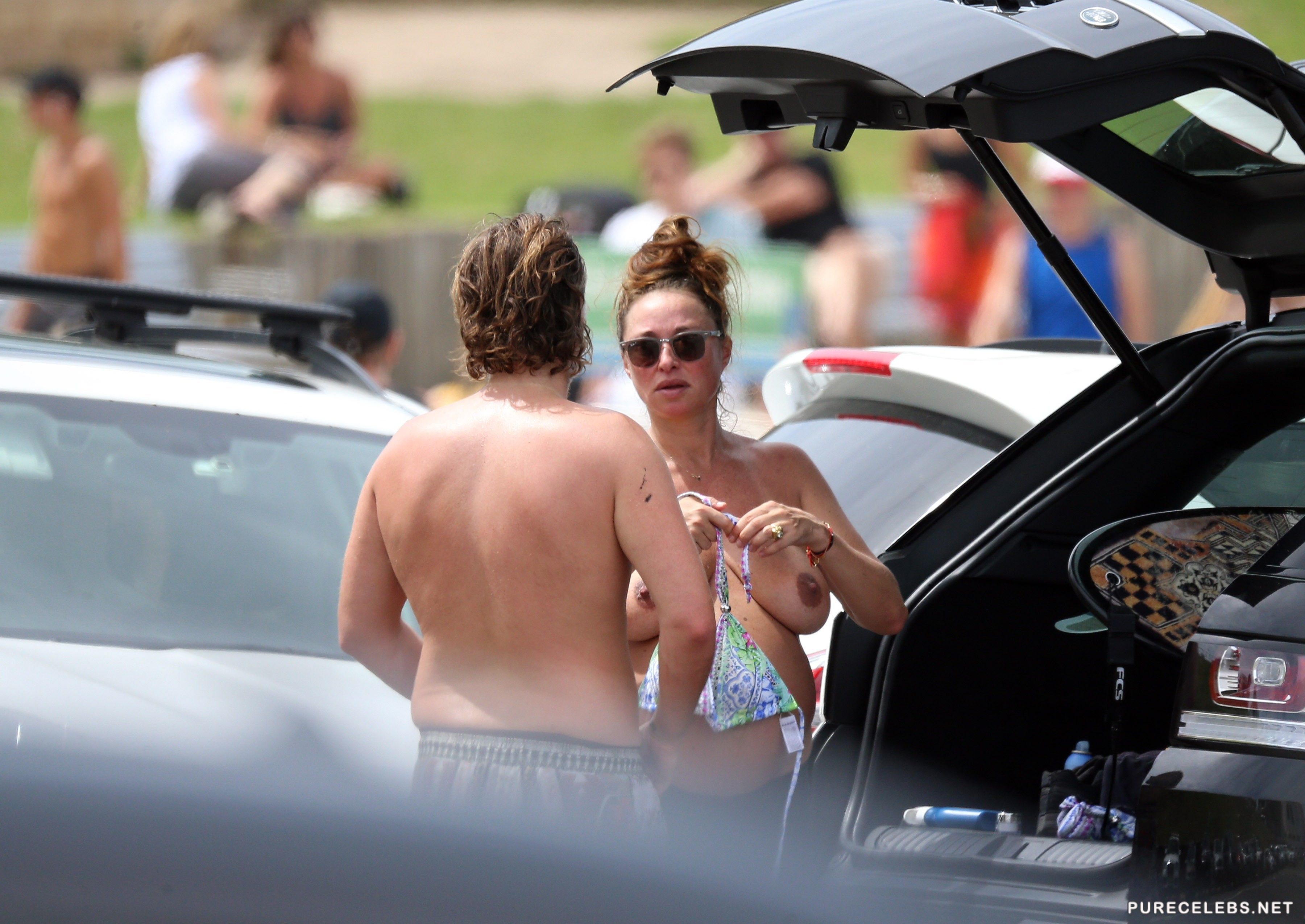 What we have here will please all fans of Camilla Franks. She’s a popular Australian clothes designer and a total hottie! This babe is caught by paparazzi in public topless. You can see her displaying her baby bump with pride, such a wonderful babe. That nice pair of natural boobies will surely impress all our dear visitors. Pure Celebs brings you some exclusive content all the time!