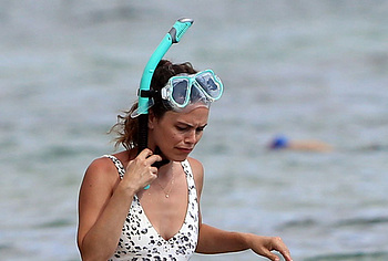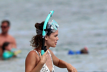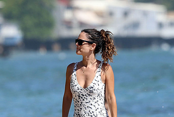 Just look who the paparazzi caught on the beach during a beach holiday. Yes, it was Rachel Bilson who showed her nude back in an open swimsuit when she swam in the sea and then sunbathed. The celebrity wore a white swimsuit with a black print that accentuated the beauty of her slender figure. In addition, the swimsuit had a rather low cut. So when Rachel Bilson bent over, her nude titties almost jumped out of it!