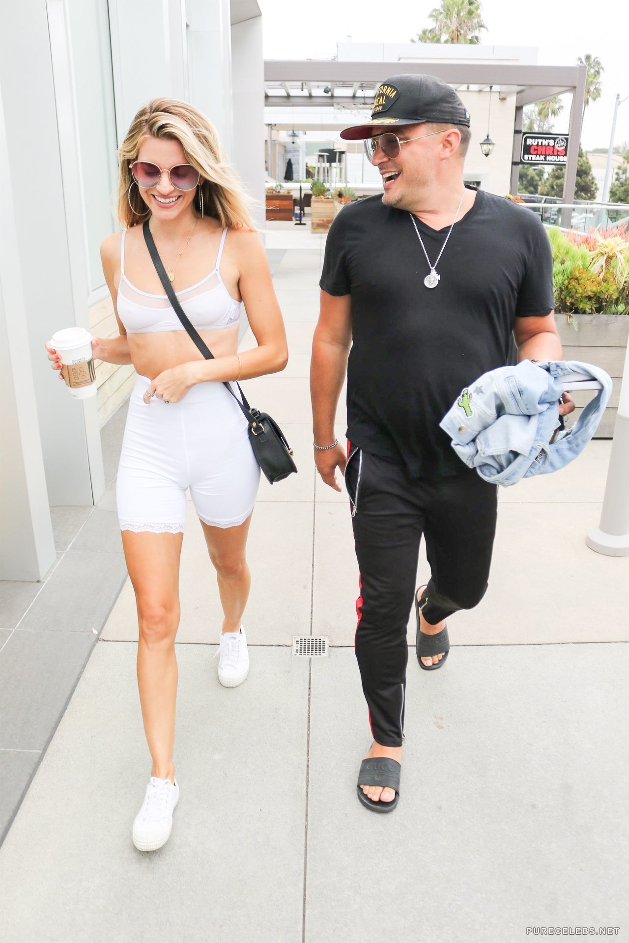 Beauty Rachel McCord loves to show off her awesome juicy boobs, and she did it again recently. The actress was dressed in white look, her tight shorts accentuated her awesome hips and long legs. But her cool tits with hard nipples, which we can clearly see through her short tight top, attracted the most attention. This hot babe will definitely make you think about her all night!
