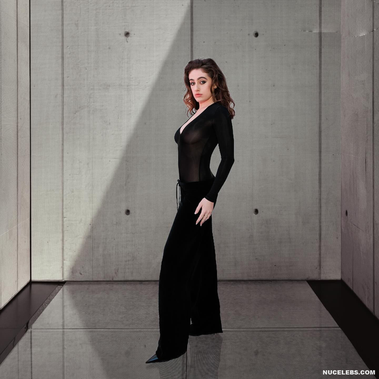 Rachel Sennott will tease your imagination a little with her nude sweet tits in a transparent outfit. So, at one of the events, this 28-year-old American actress posed in wide black pants and a black blouse. People around could enjoy her wonderful breasts since this charming celebrity was wearing braless. The transparent fabric only emphasized the beauty of Rachel Sennott’s nude titties with hard nipples. I bet all you can think about right now is how to touch her!