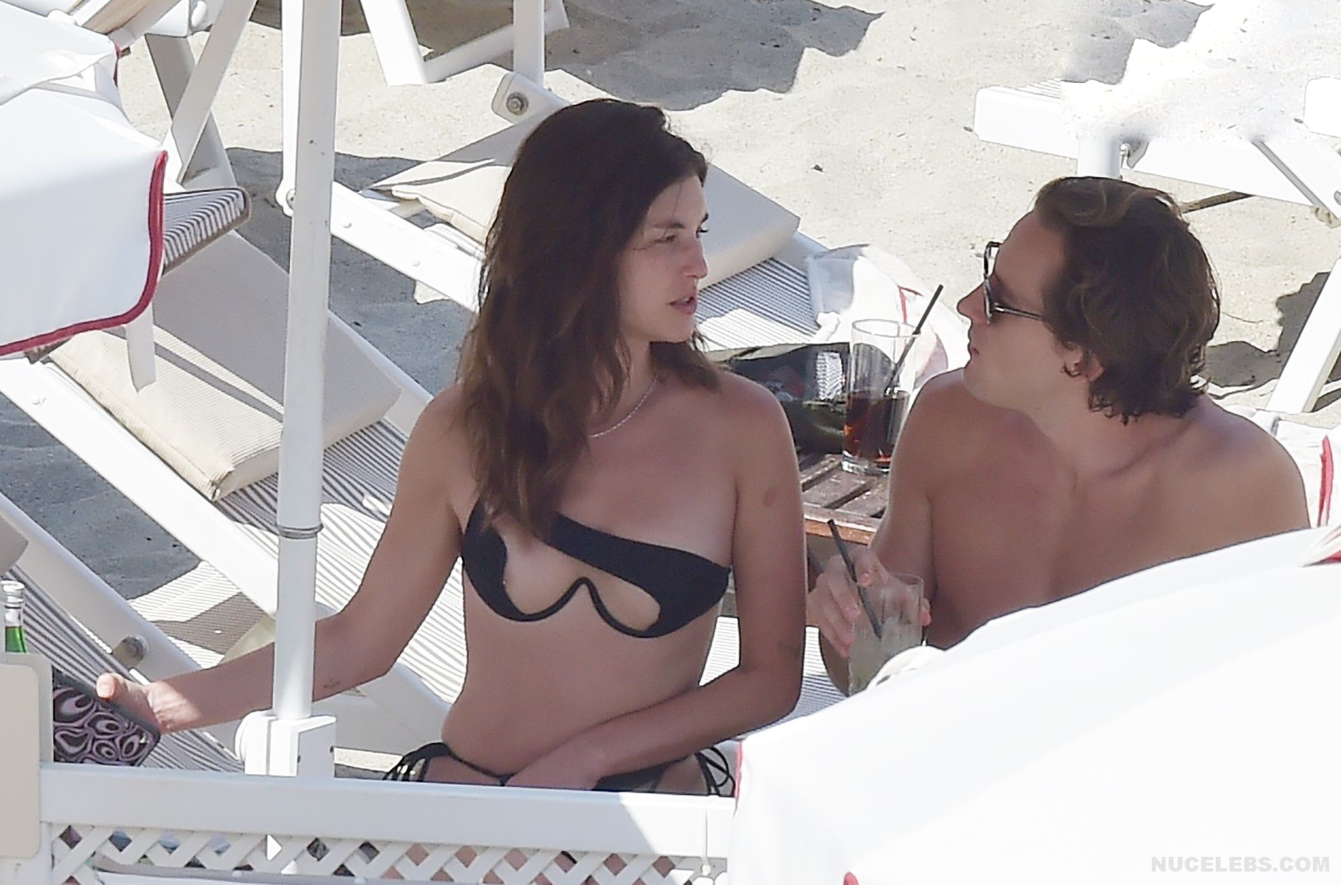 Recently, the paparazzi photographed Rainey Qualley nude boobies right on the beach. It turns out that this celebrity wore a black bikini in a very specific cut. So, right in the center of the bra was a large transparent insert. And Rainey Qualley’s nude titties with pierced nipples were seen through her bra from time to time! By the way, her panties were also very small and barely covered the sweet butt and pussy of this 32-year-old American actress.
