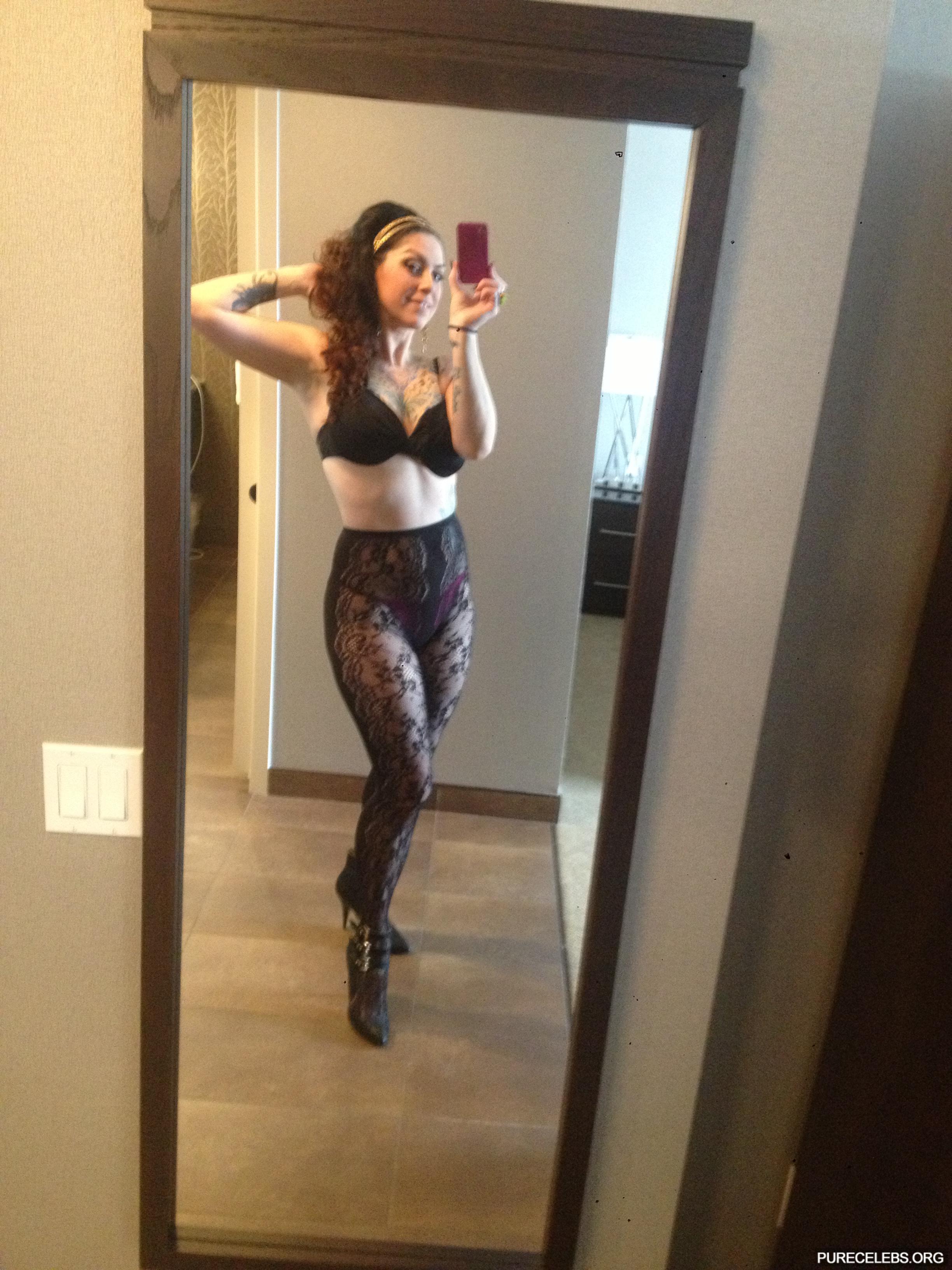 As it became known, Danielle Colby fappening and nude photos leaked to the network. This reality star turns out to love taking selfies in underwear. And it is worth noting that she looked very seductive posing in black stockings and black lingerie. But even more exciting were her other photos. For example, she demonstrated her naked booty, adorned with golden straps. Danielle Colby also pleased her fans with a nude photo in which she posed in the bathroom. Her huge wet boobies and hairy pussy looked very sexy!
