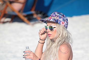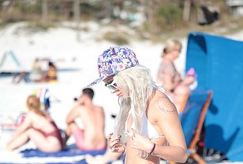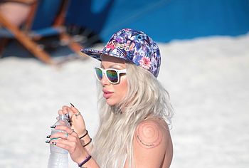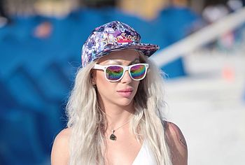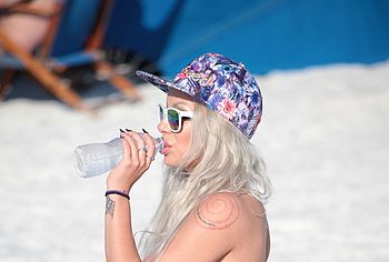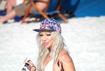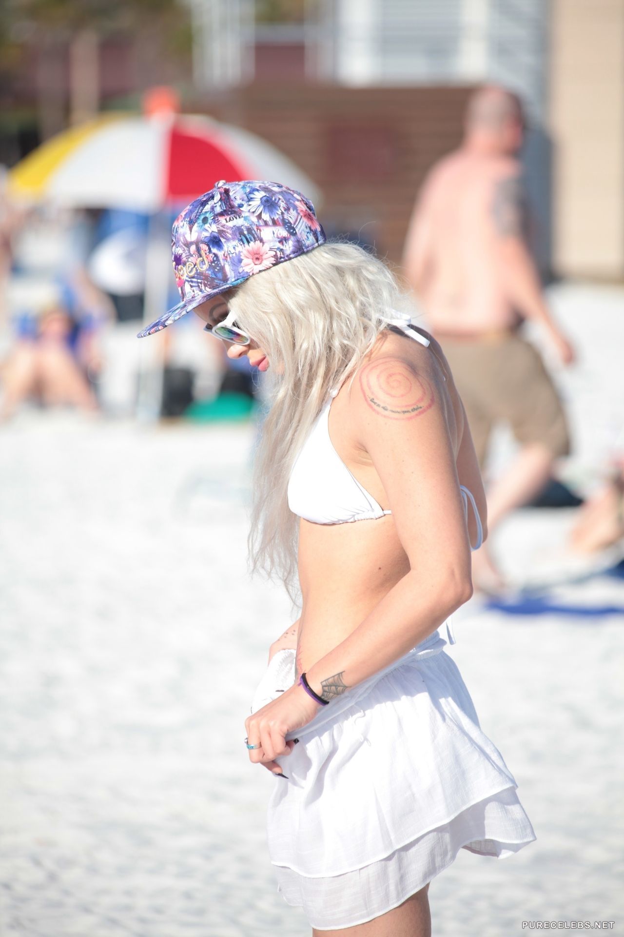 Lyra Rae puts on her sexy white bikini on and then she goes to the beach to relax a bit. The top heavy reality star makes sure to lie down on her stomach so her butt could get a nice tan. The chick knows that it will attract a lot of attention since it is so full and a lot of people want to bite and slap it.