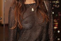 Actress Rebecca Dayan never ceases to pamper her fans with provocative photos. This beauty can often be seen in bright and sexy outfits. For example, here are photos from one of the events that this celebrity visited. The girl was dressed in striped pants and a black translucent sweater. Therefore, it is not surprising that everyone around could see Rebecca Dayan nude boobies with small nipples. And it is worth noting that it was an amazing sight!