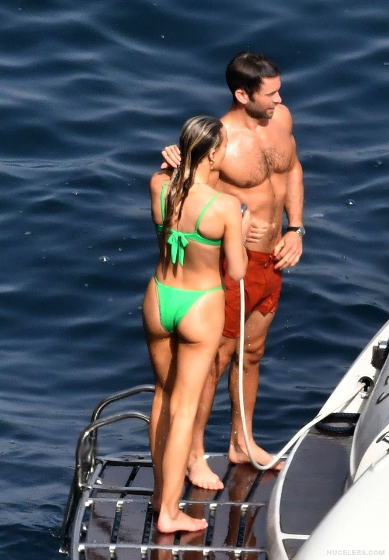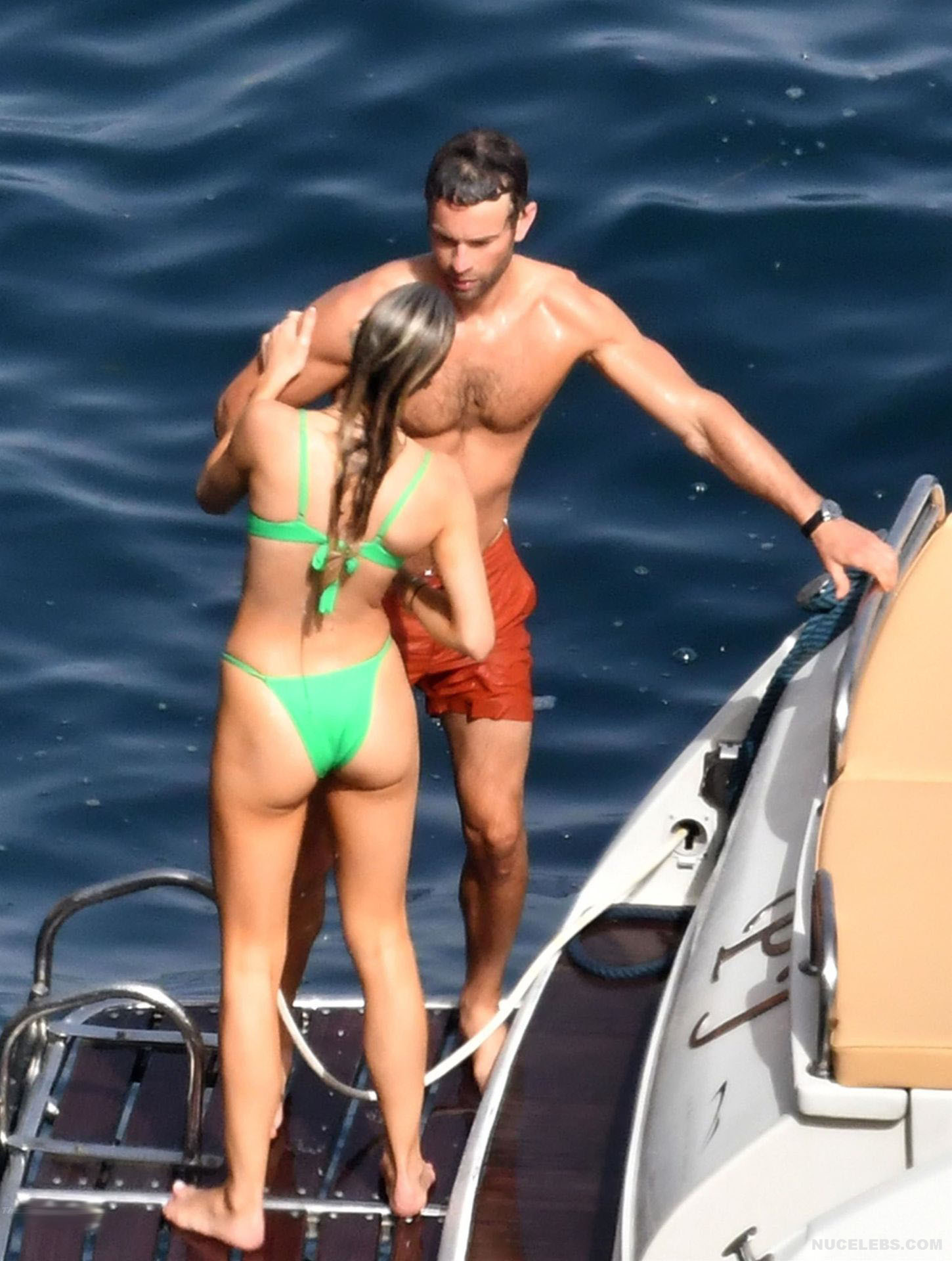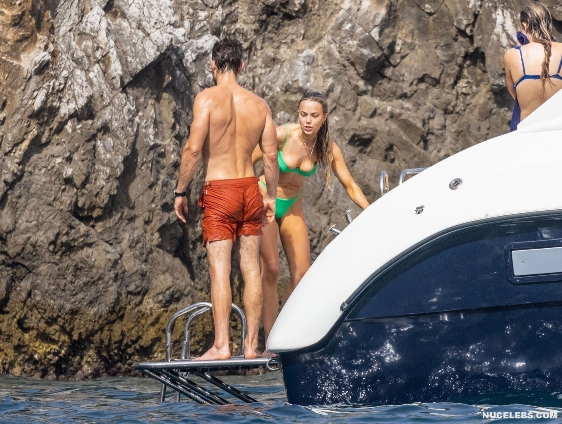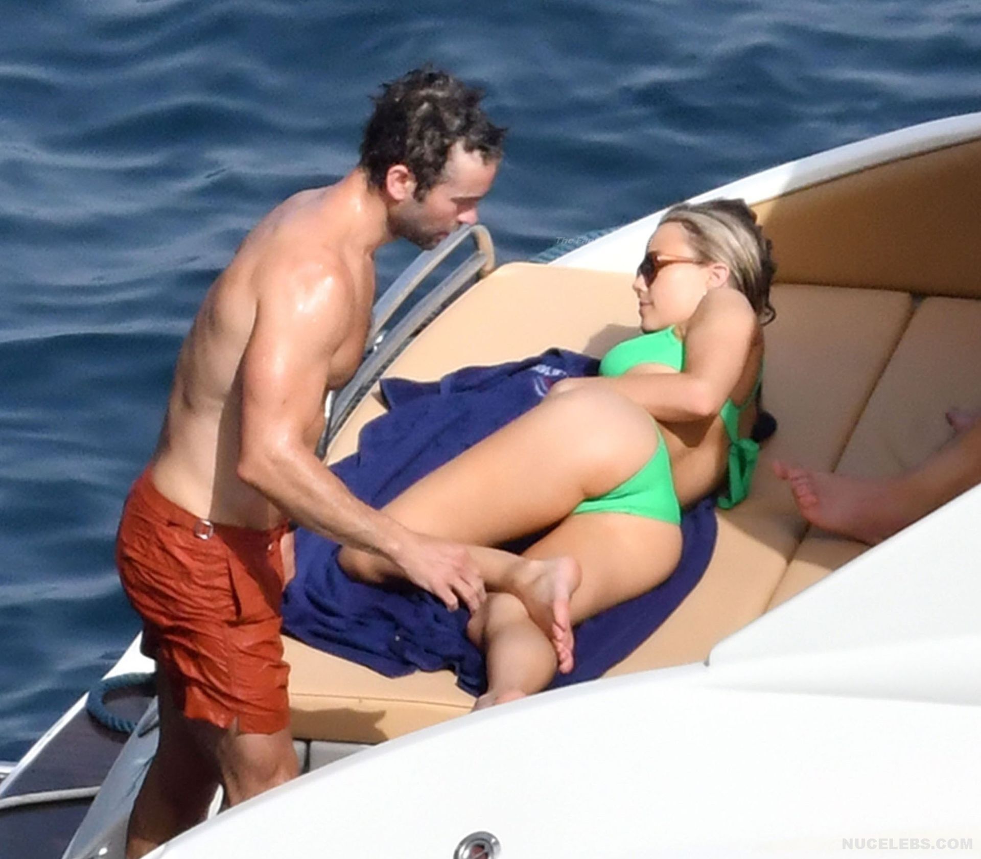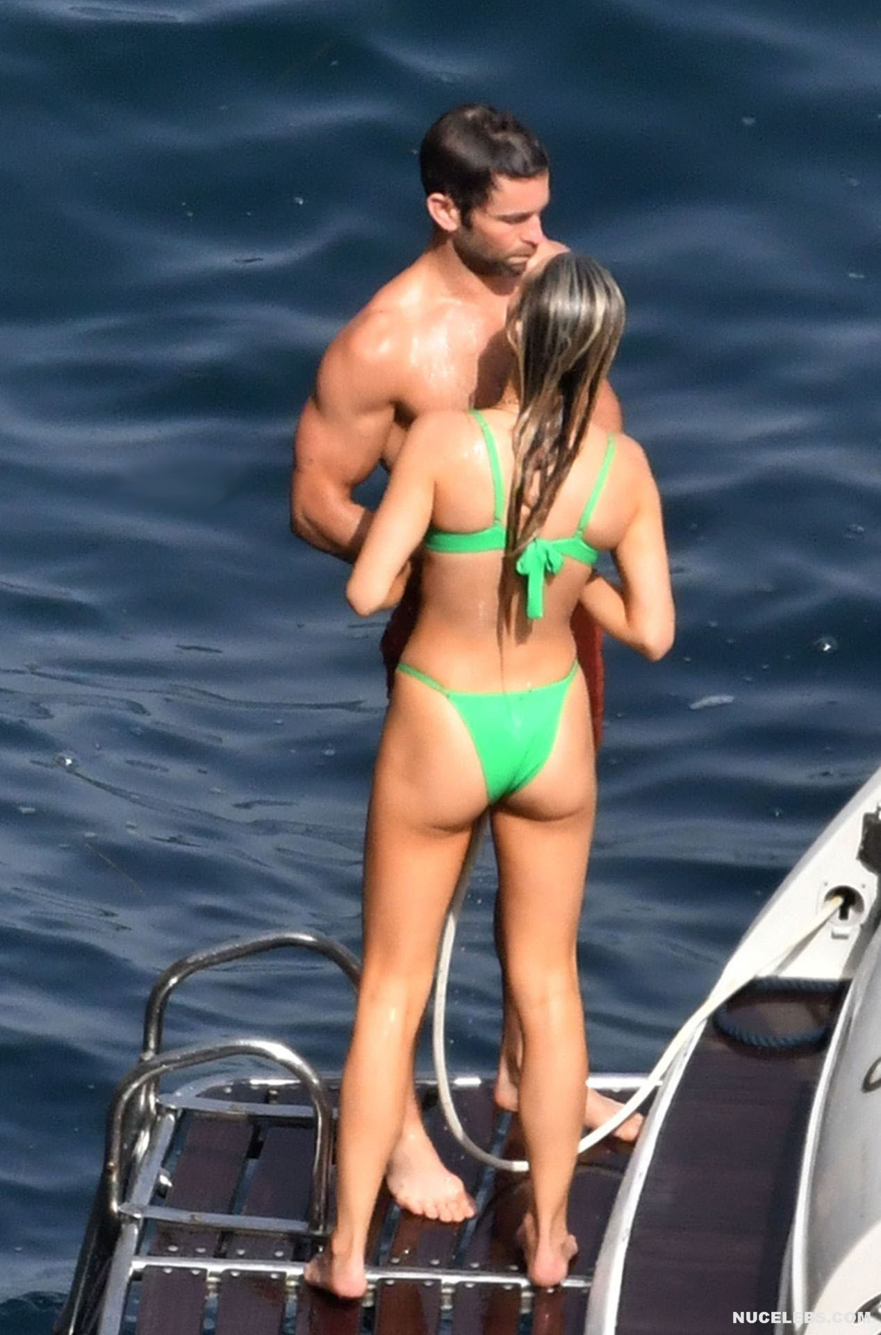 Turns out American actress Rebecca Rittenhouse is an incredibly hot babe! The paparazzi took great pictures of this celebrity from her vacation on a yacht. It is a pity, of course, that Rebecca Rittenhouse did not sunbathe there completely nude. However, this celebrity was wearing such a petite green bikini that it barely hid her gorgeous body. The green panties were so tight in front they barely covered Rebecca Rittenhouse’s nude pussy. And her boobs were too big for her bra and they seemed to pop out of it when she bent over.