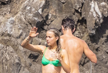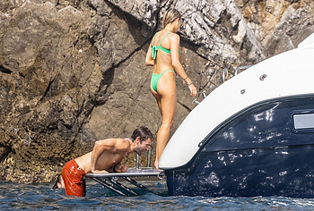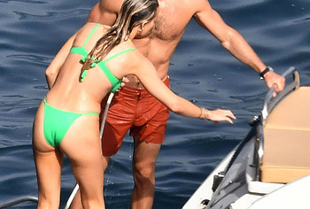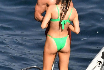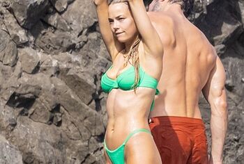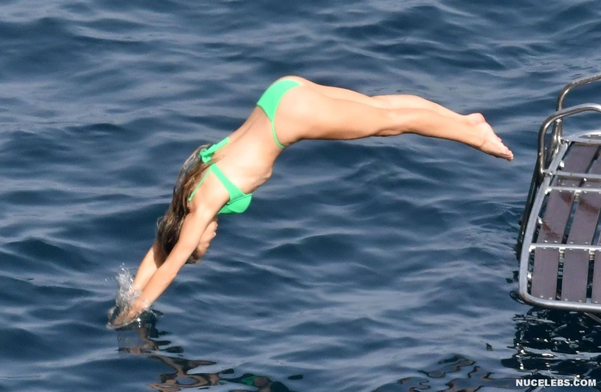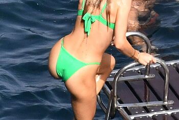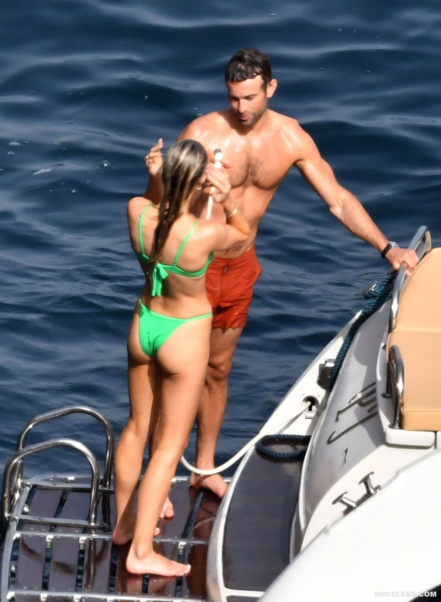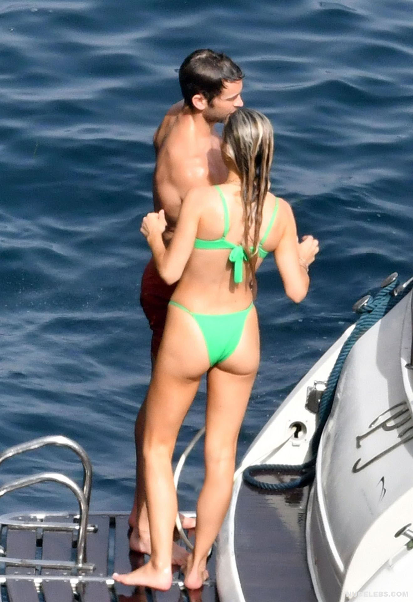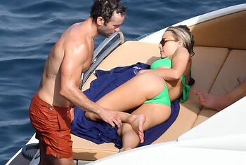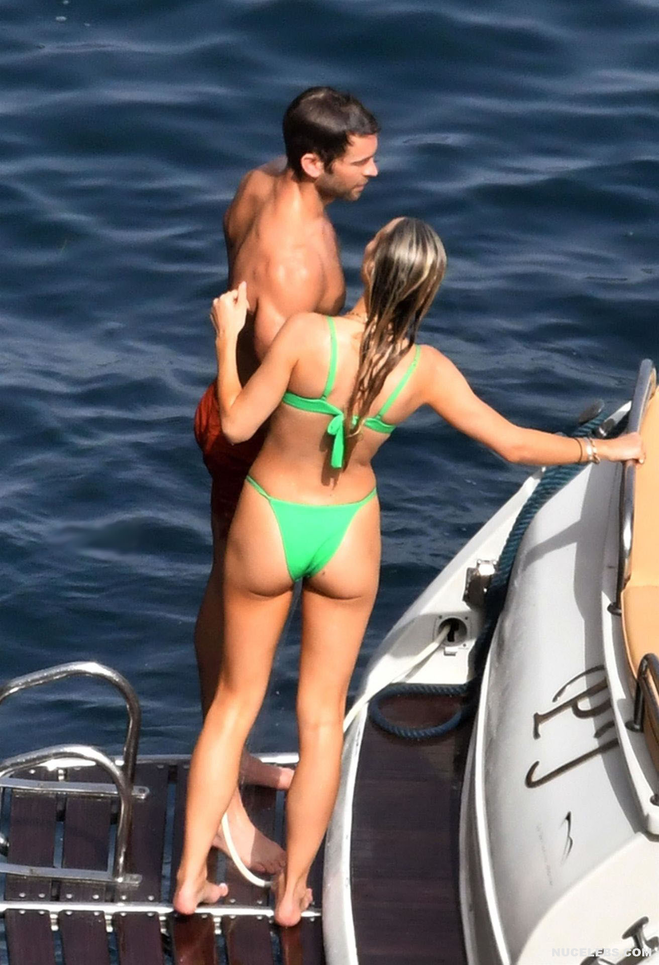 Turns out American actress Rebecca Rittenhouse is an incredibly hot babe! The paparazzi took great pictures of this celebrity from her vacation on a yacht. It is a pity, of course, that Rebecca Rittenhouse did not sunbathe there completely nude. However, this celebrity was wearing such a petite green bikini that it barely hid her gorgeous body. The green panties were so tight in front they barely covered Rebecca Rittenhouse’s nude pussy. And her boobs were too big for her bra and they seemed to pop out of it when she bent over.